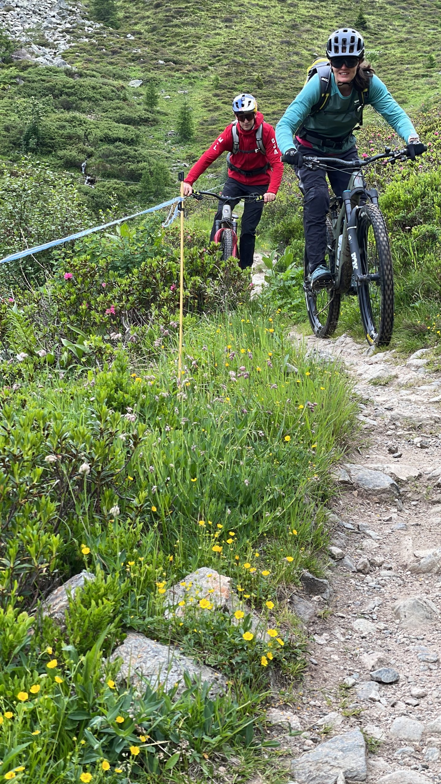 Mega, mega, mega! Kombination aus Tom Öhler und Davos ein Jackpot-Gewinn. Morgens um 9h vom Hotel Grischa mit der Jakobsbahn Raufs auf Jakobshorn. Fresh da oben. Alps Epic a la Tom Öhler. Unfassbare Trails, Trails, Trails. Die machen richtig Spaß. Getrennte Radspur von den Wanderwegen – auch lässig. Noch mal die Bahn zum Rinerhorn. Trails, Trails, Trails. Einkehr in Mondstein. Trails, Trails, Trails. Ein paar Rampen. Am Ende in Filisur 6h, 53km, 900 Hm und 2.900 Tm auf der Uhr.