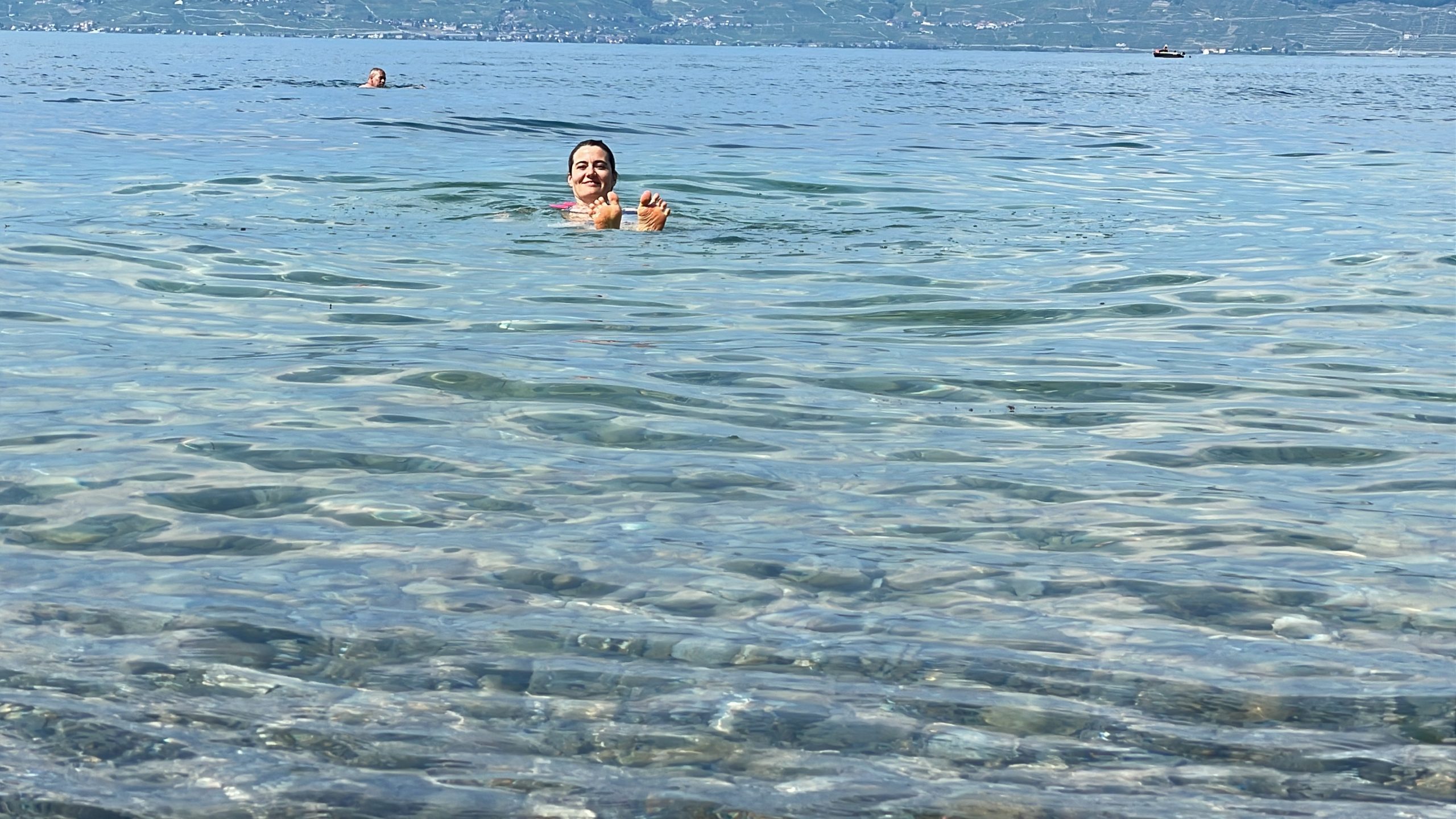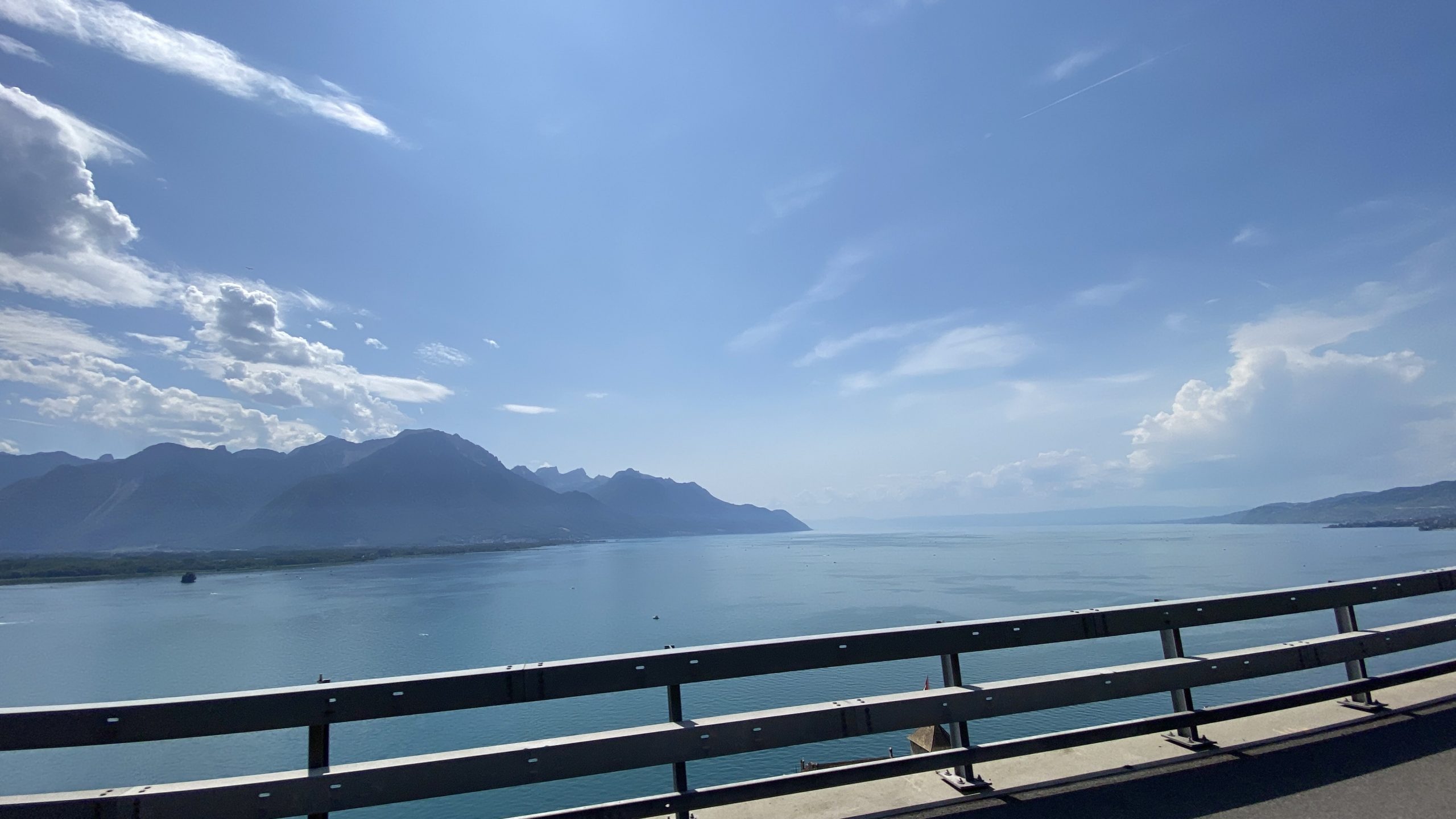 Vorbei am traumhaften Genfer See. Bei 34 Grad wäre ein Sprung in den See fabelhaft. In der Schweiz gibt es leider keine freien Parkplätze oder es gibt keinen Zugang zum See. In Frankreich finden wir einen super Platz und Zugang zum See. Ist das herrlich!