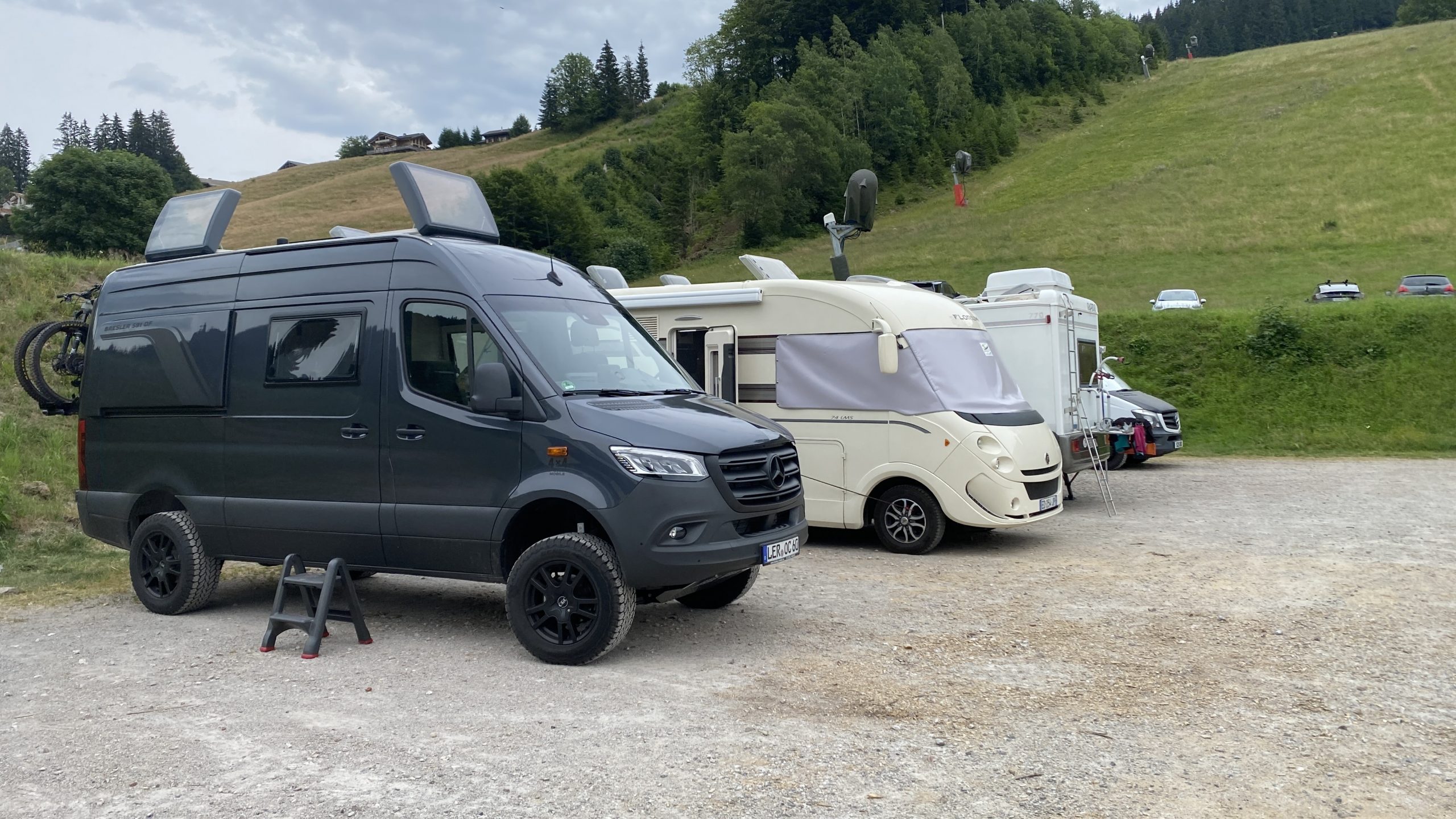 Nur so halb. Der Camping ist voll. Die Straßen auch. Aber wir finden am Lift einen kostenlosen Stellplatz. Bis Donnerstag müssen wir hier definitiv wieder weg sein. Dann kommt die richtige Tour…