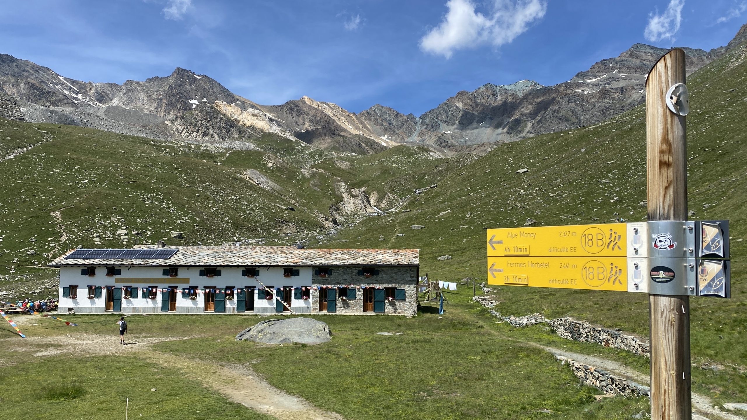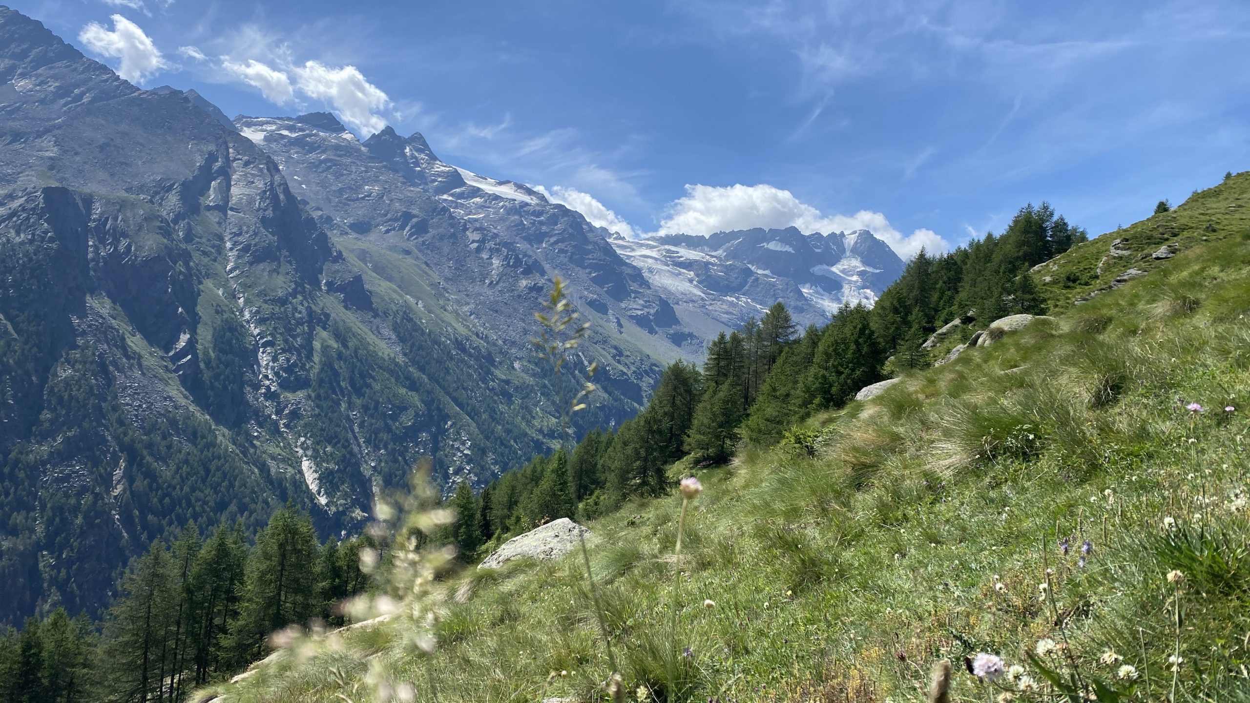 Hier ist es schön und wir dürfen doch noch eine Nacht auf dem Camping bleiben. Das nutzen wir für eine schöne Wanderung zum Rifugio Vittorio Sella im Parco Nazionale Gran Paradiso. Ein Wildblumen- und Schmetterlings-Paradies. Traumhafter Blick auf die Gletscher.