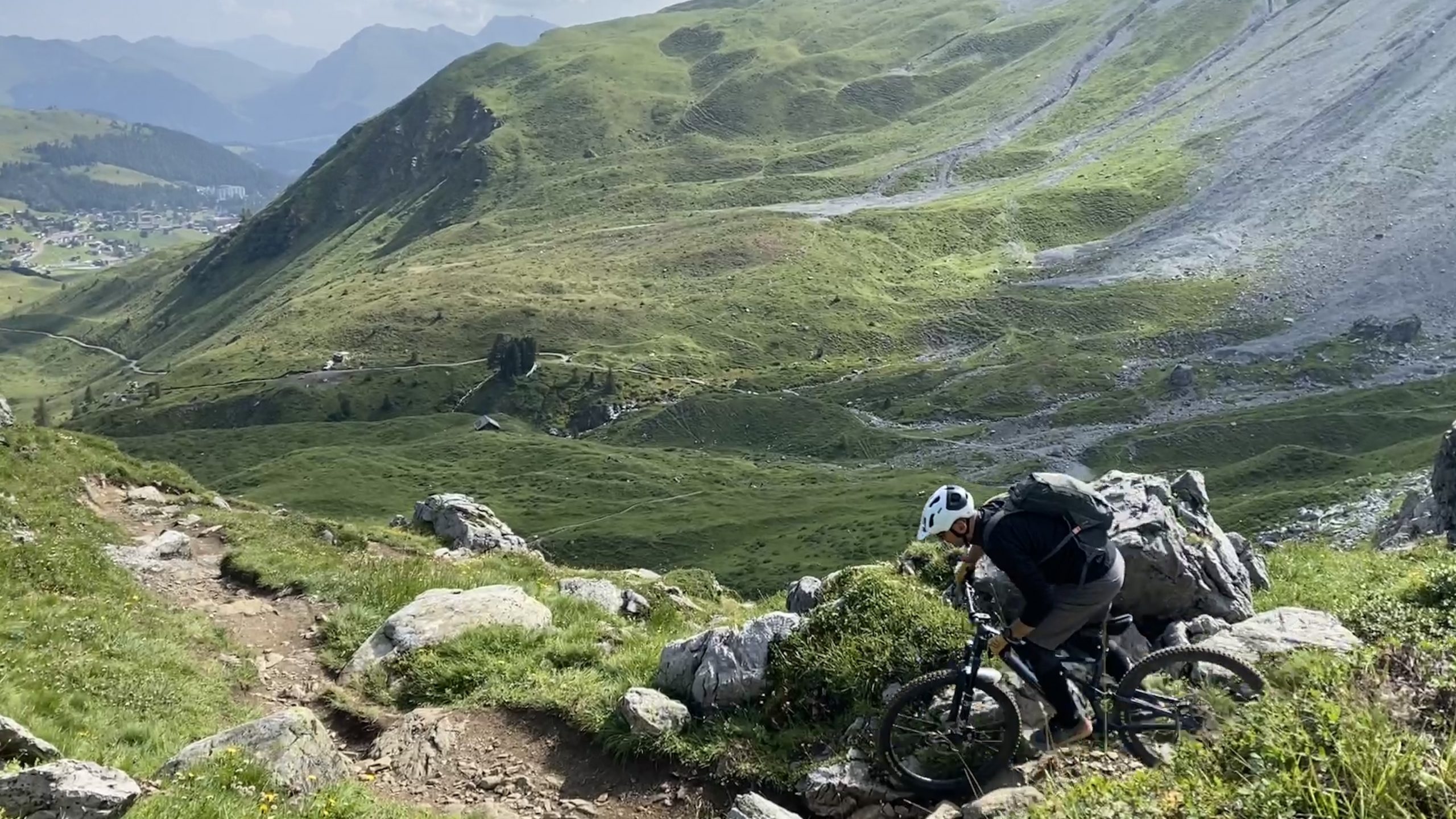 Wir wollen noch zwei neue Trails testen. Über die Trails „Urdenfürrgli Twister“ und „Motta Express“ testen wir den „Parpan one way“ – ein Wanderweg – wunderbar technisch. Das mögen wir.