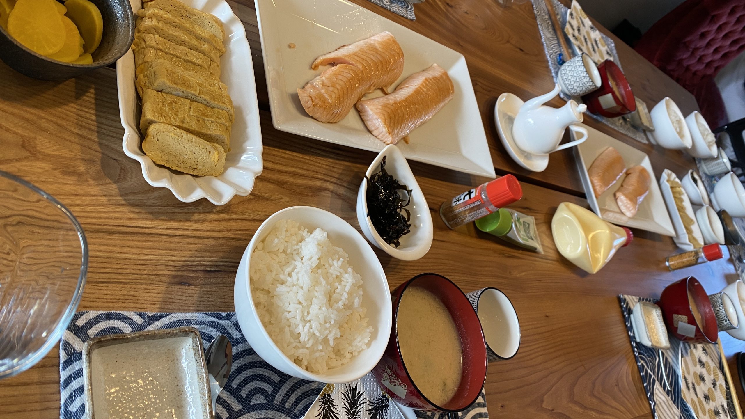 Wir sind bei Jan und Georgina zum Japanischen Brunch eingeladen. Mega, mega, lecker! Alles. So lecker asiatisch haben wir lange nicht gegessen. Nach dem Radfahren heute schmeckt es so richtig! Richtig schöne Runde!