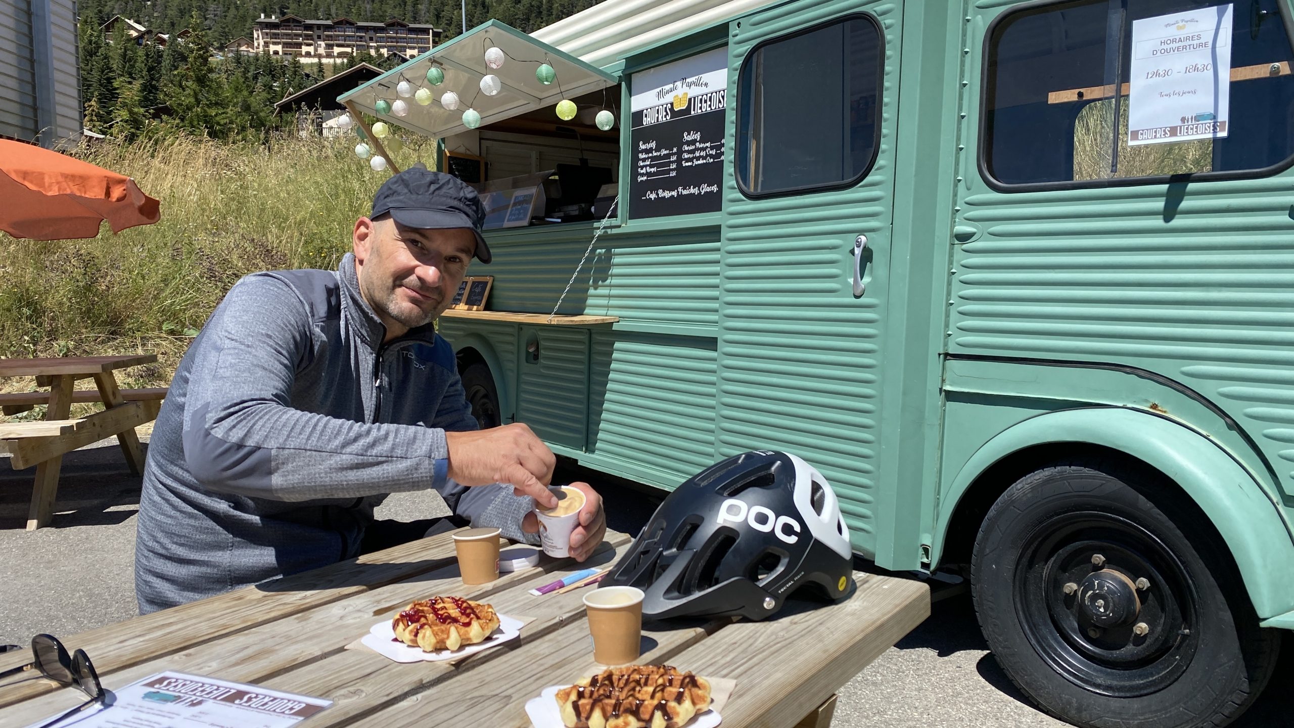 Zurück in Montgenèvre freuen wir uns über einen Foodtruck mit Waffel und Café. Die Stärkung können wir gut gebrauchen.