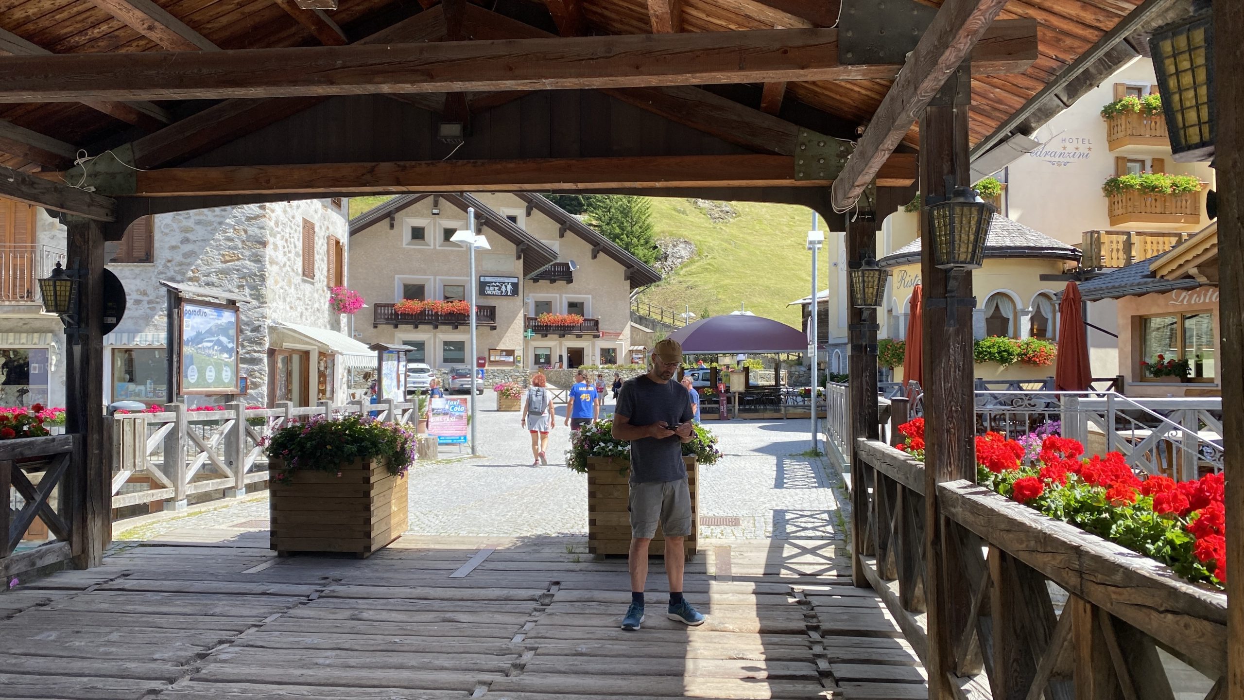 wir ein Plätzchen. Wir spazieren durchs Örtchen und buchen easy ein Shuttle für morgen zur Pizzini Hütte. Sehr nettes Örtchen – hier gefällt es uns auf Anhieb sehr.