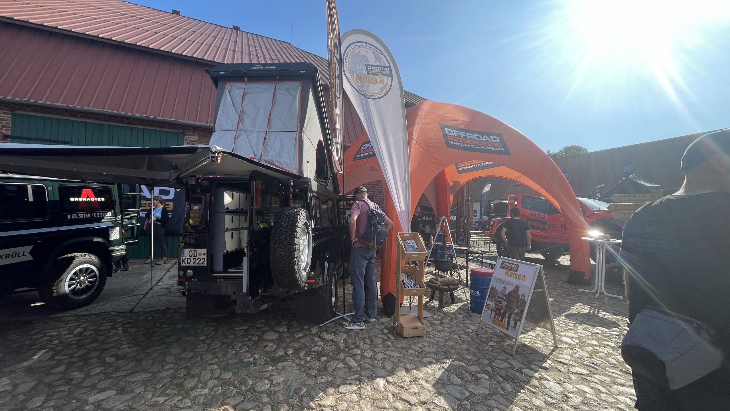 Die Messe ist überraschend größer als gedacht. Wir finden einen super Hering-Hammer, eine Mini-Abwaschschüssel und einen Saugnapfhalter. Infos für Solar und Wasserfilter.
