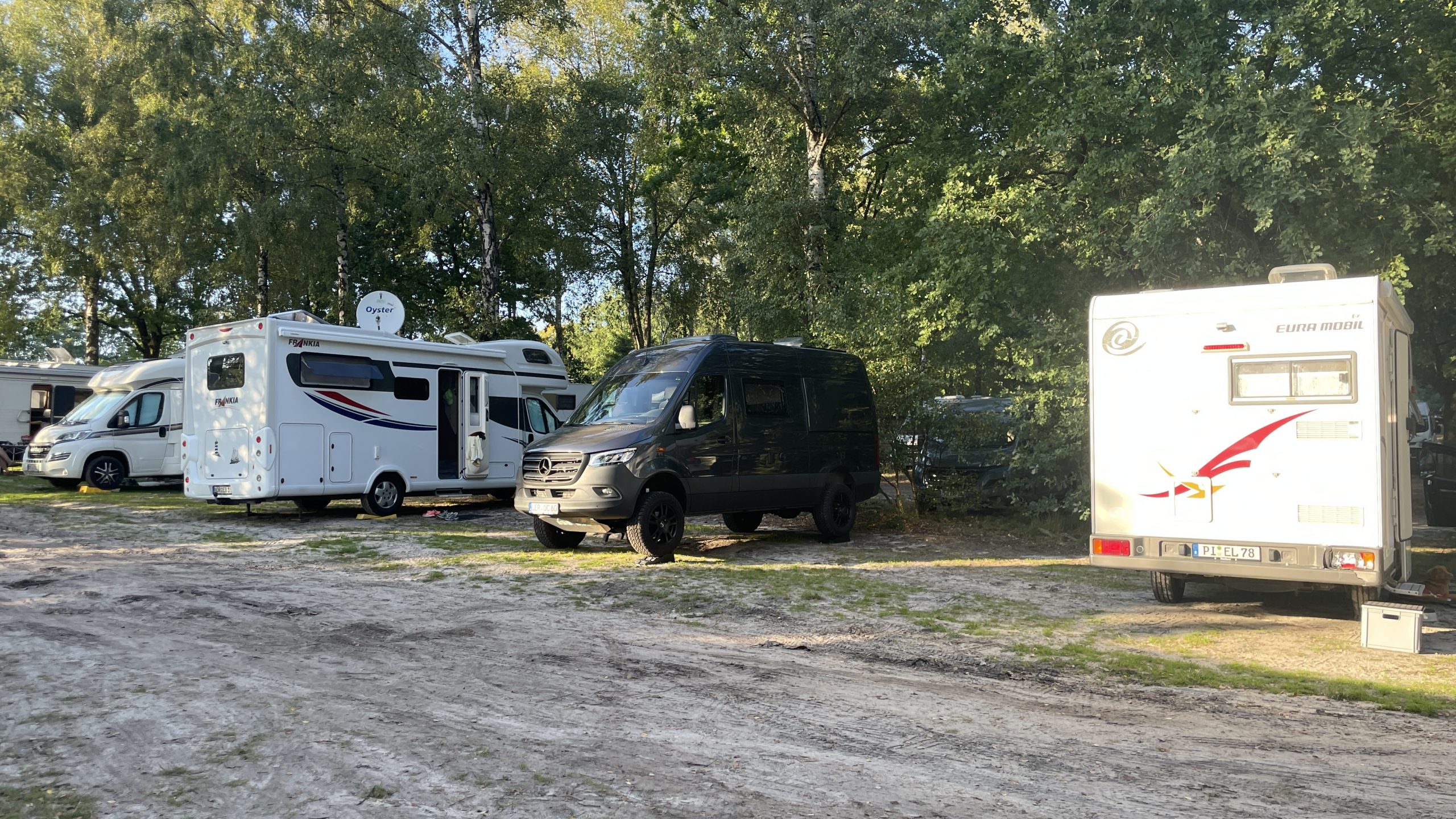 Für eine weitere Nacht ist uns das Camp zu voll. Wir kennen einen super Parkplatz an der Elbe. Vor Ort müssen wir leider feststellen, dass der Parkplatz immer noch super ist, aber leider eine Höhenbegrenzung von 2 Metern hat. Der Alternativ-Stellplatz ist voll und wir haben Lust auf Natur.