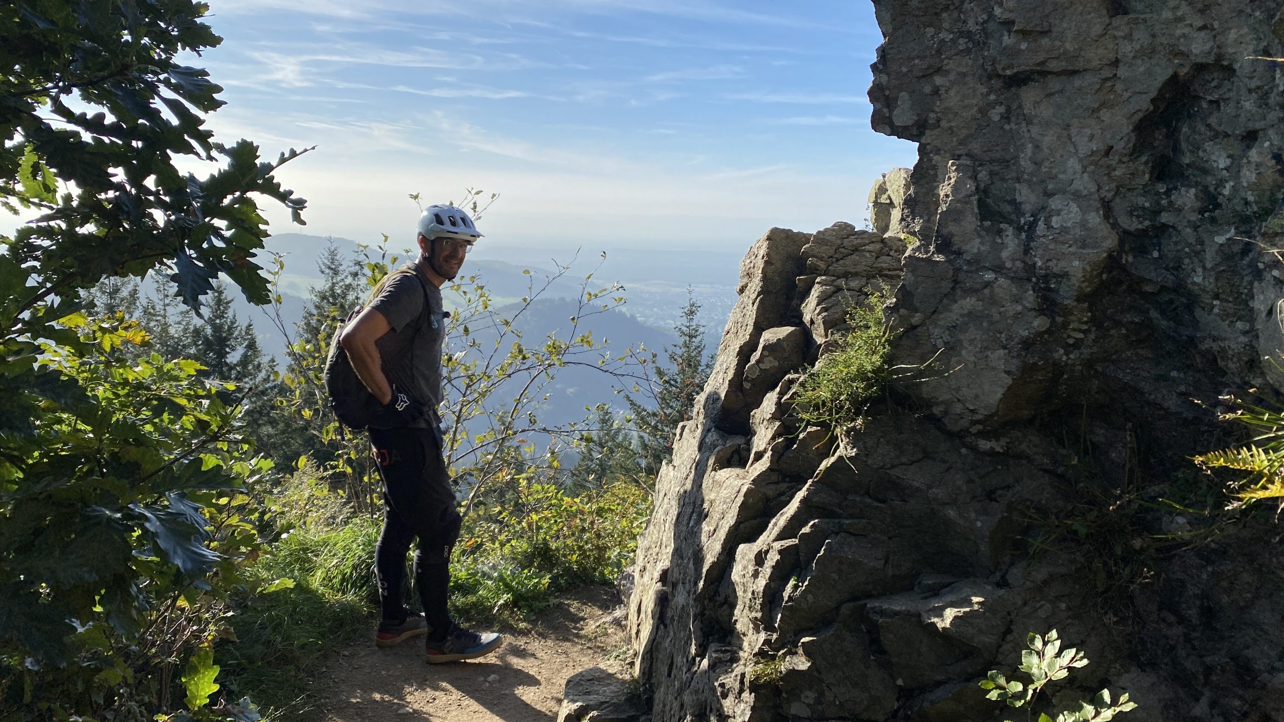 Das Wetter ist perfekt. Sonne, warm und wir fahren im Oktober kurz-kurz. Der Aufstieg ist knackig. Der gefundene Uphill besser als das Mal zuvor. Den müssen wir uns merken.