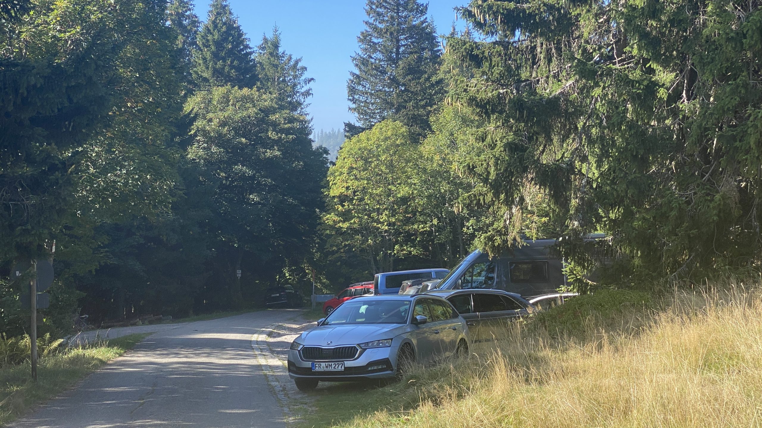 Nach einer ruhigen Nacht auf unserem Parkplatz am Schauinsland wollen wir die die schweren Beine von gestern „ausschütteln“. Wir fahren nach Todtnau hoch zur Todtnauer Hütte. Vor der Hütte gibt es einen kleinen Wanderparkplatz. Alle Parkplätze belegt. Aber da wir Glückpilze sind, kommt ein Paar zurück und wir ergattern den letzten Platz.