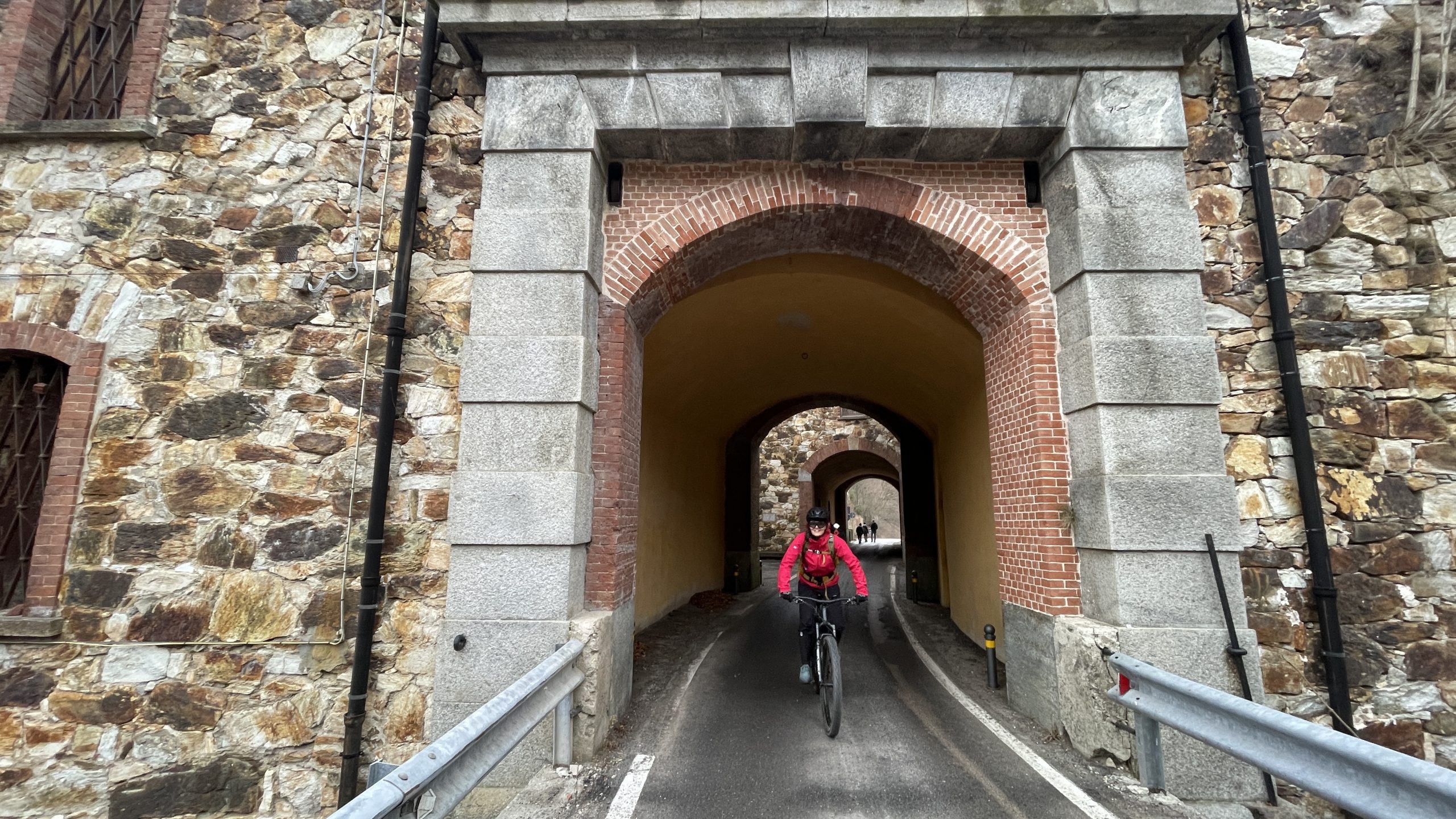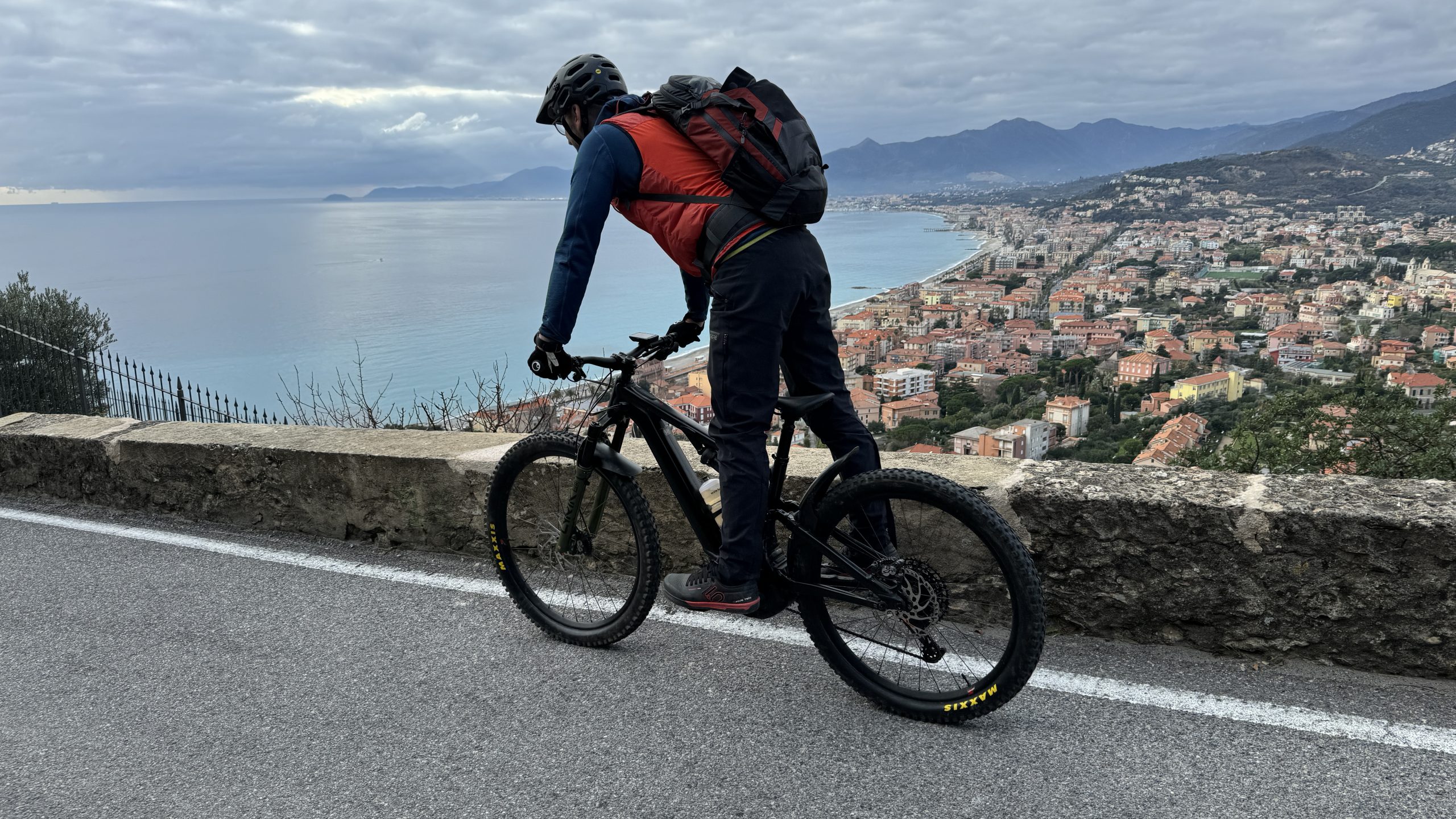 Den Rückweg nach Pietra Ligure „kürzen“ wir ab. Es geht noch einmal 250 Höhenmeter steile Rampen hoch. Dank E und Stufe 2 möglich. Der Rückweg fühlt sich schon weit an…