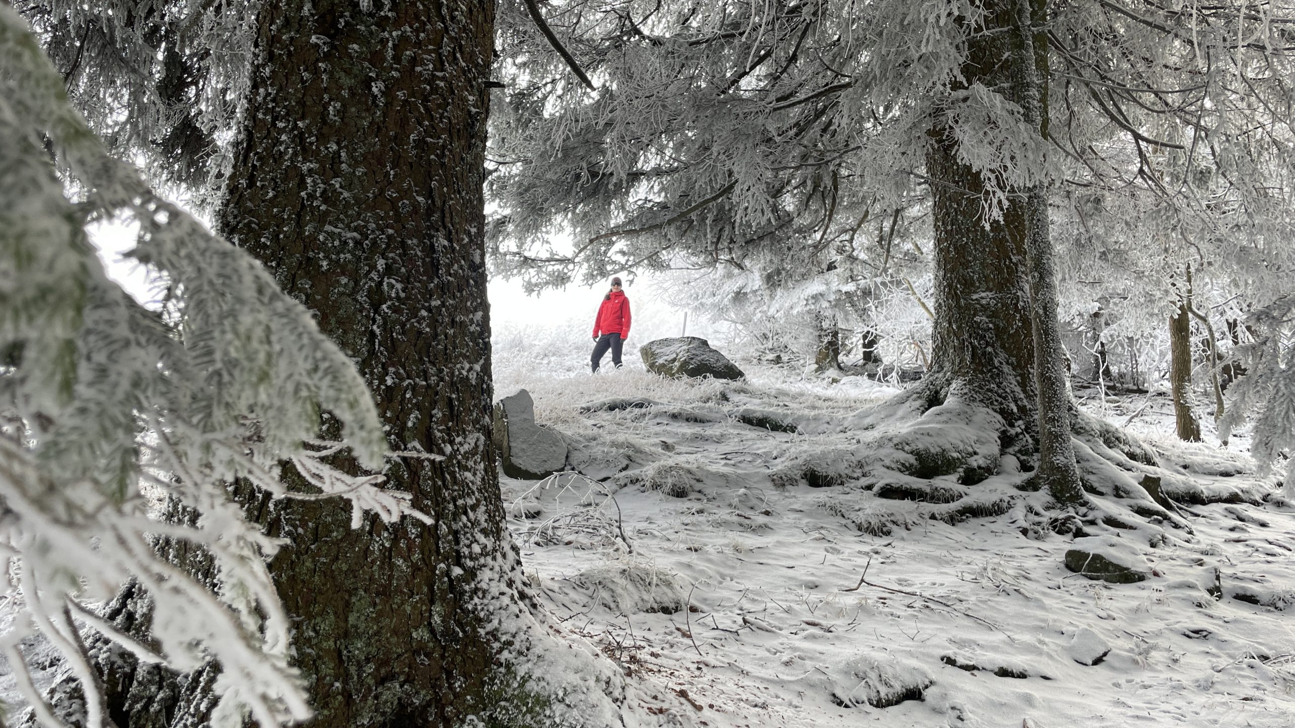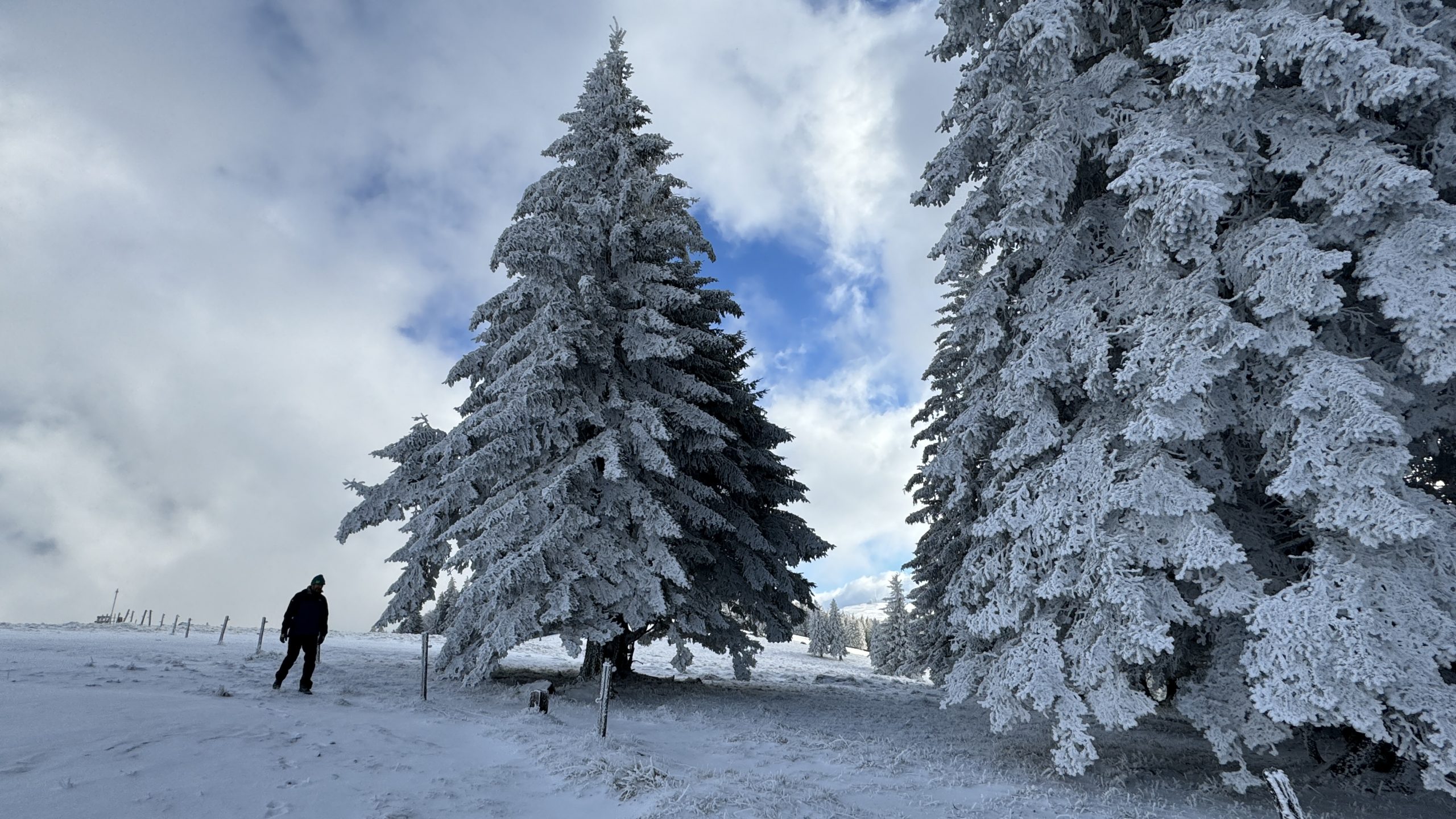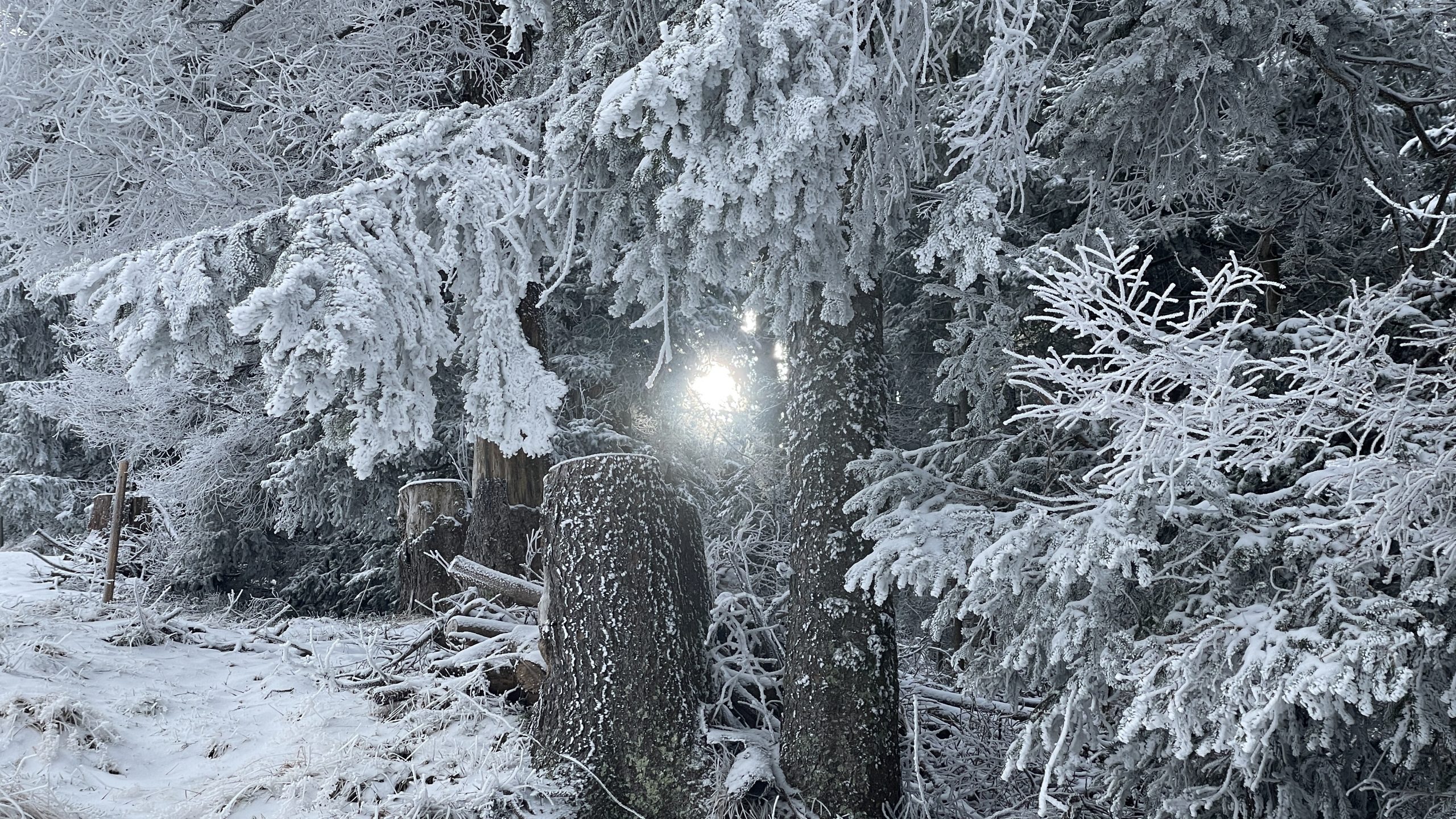 Wir drehen eine kleine Runde von der Stollenbacher Hütte. Es liegt Schnee und ist frisch. Der Blick vom „Tote Mann“ ist sensationell – ein Spiel aus Sonne, Wolken, blauen Himmel und weiß-gefrorenen Bäumen. Traumhaft.