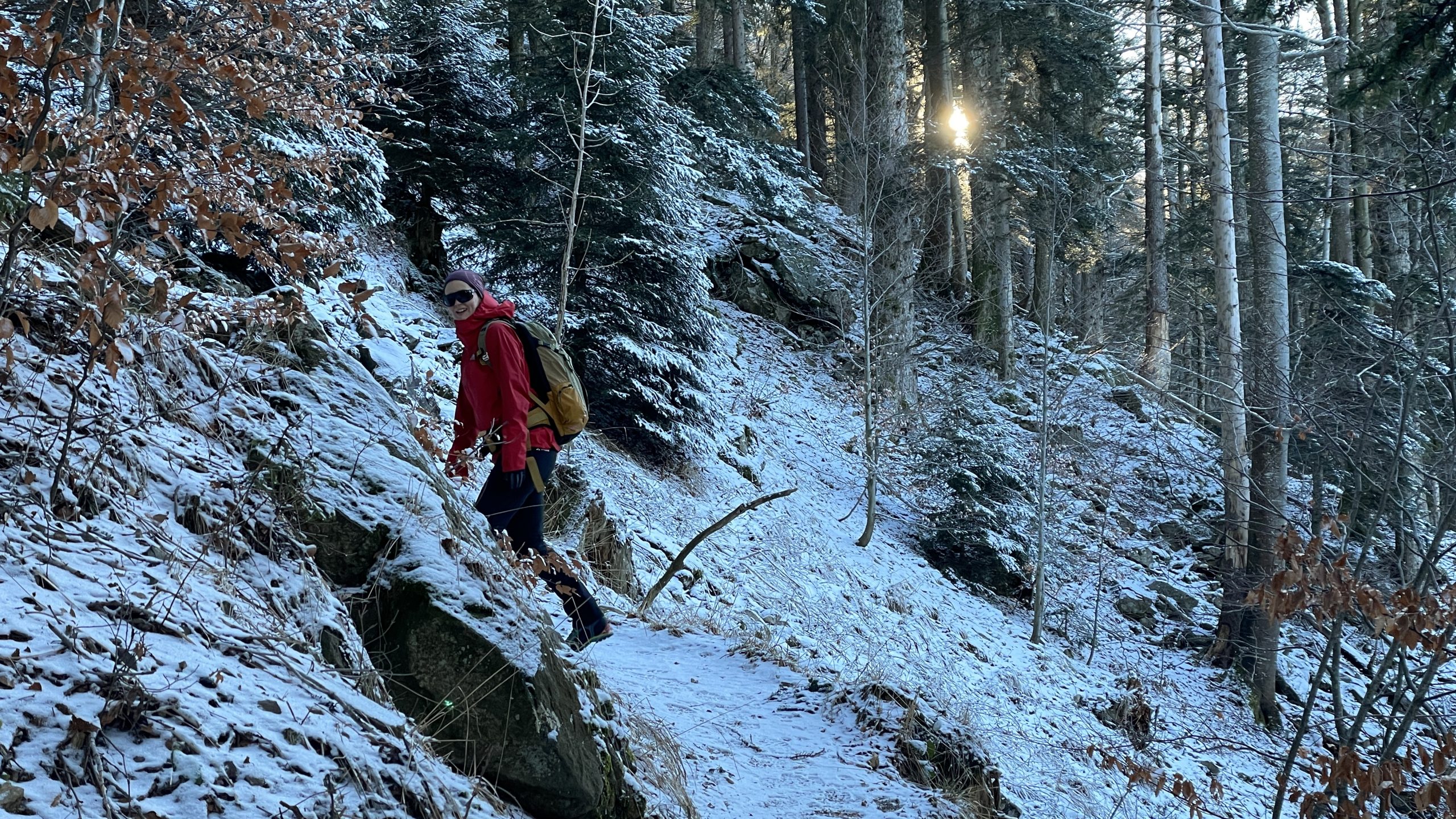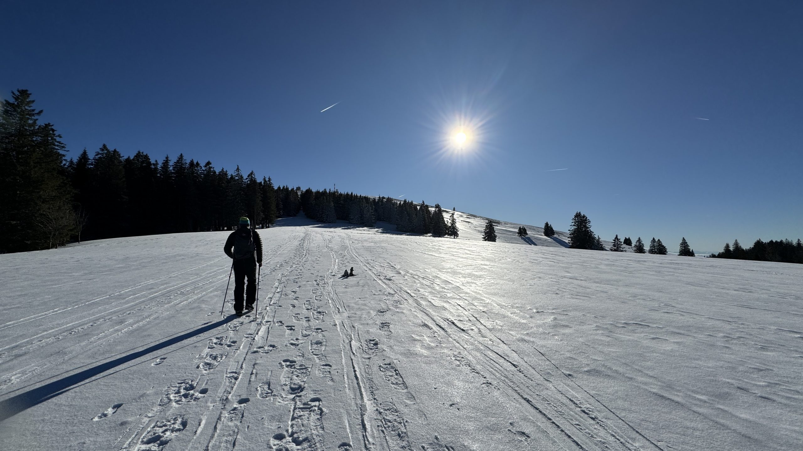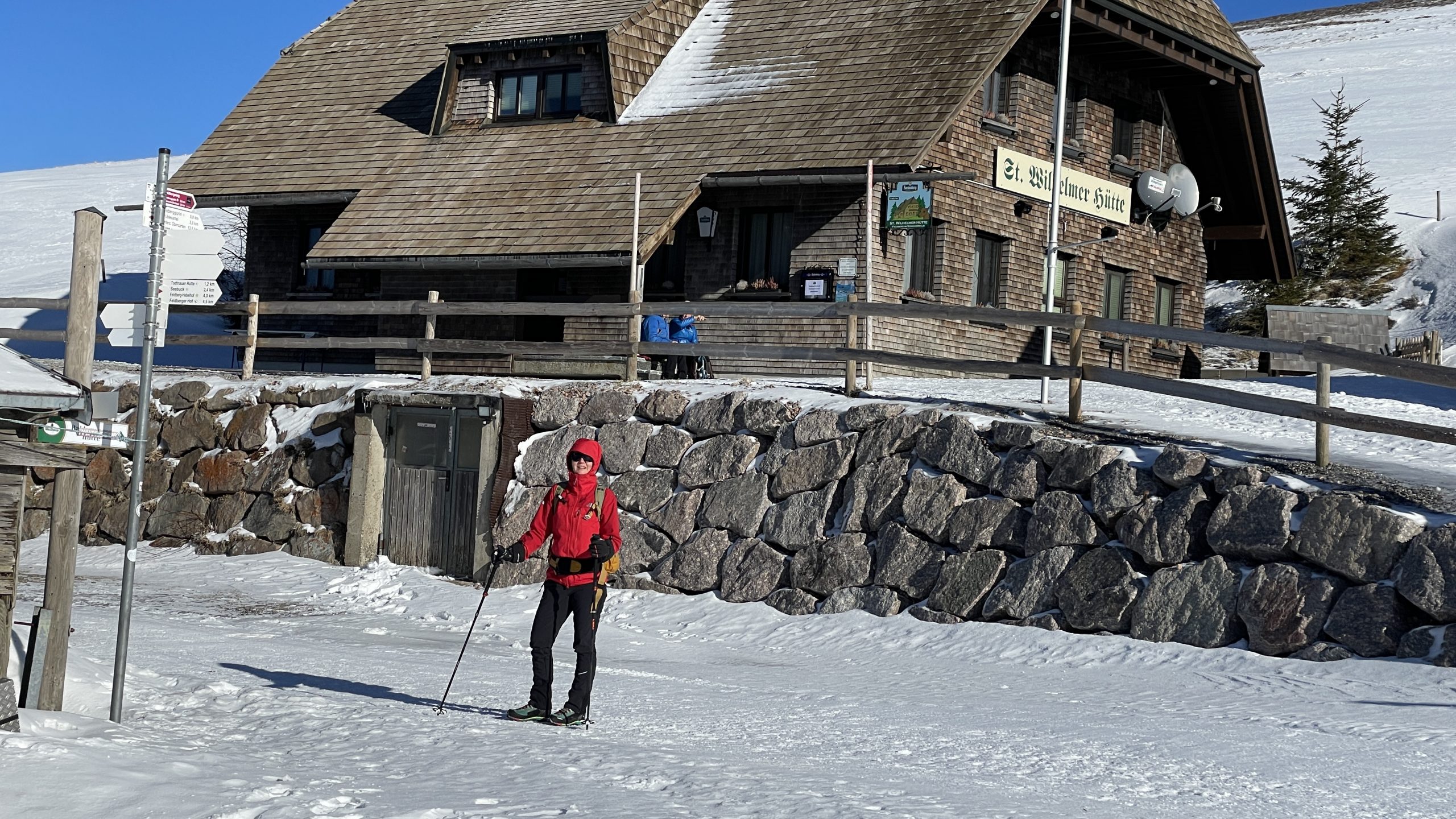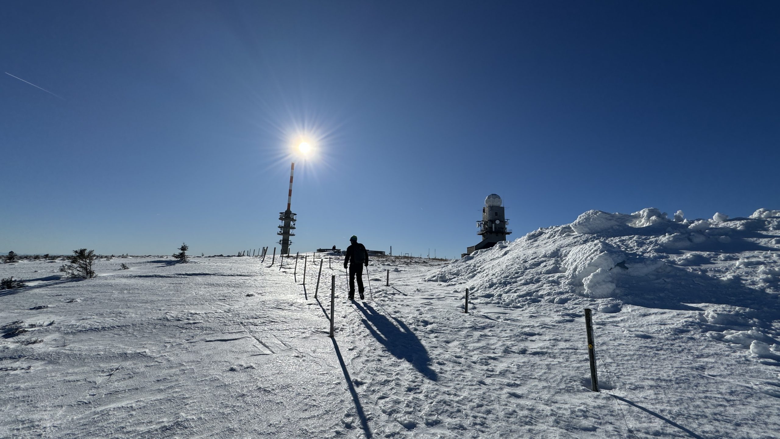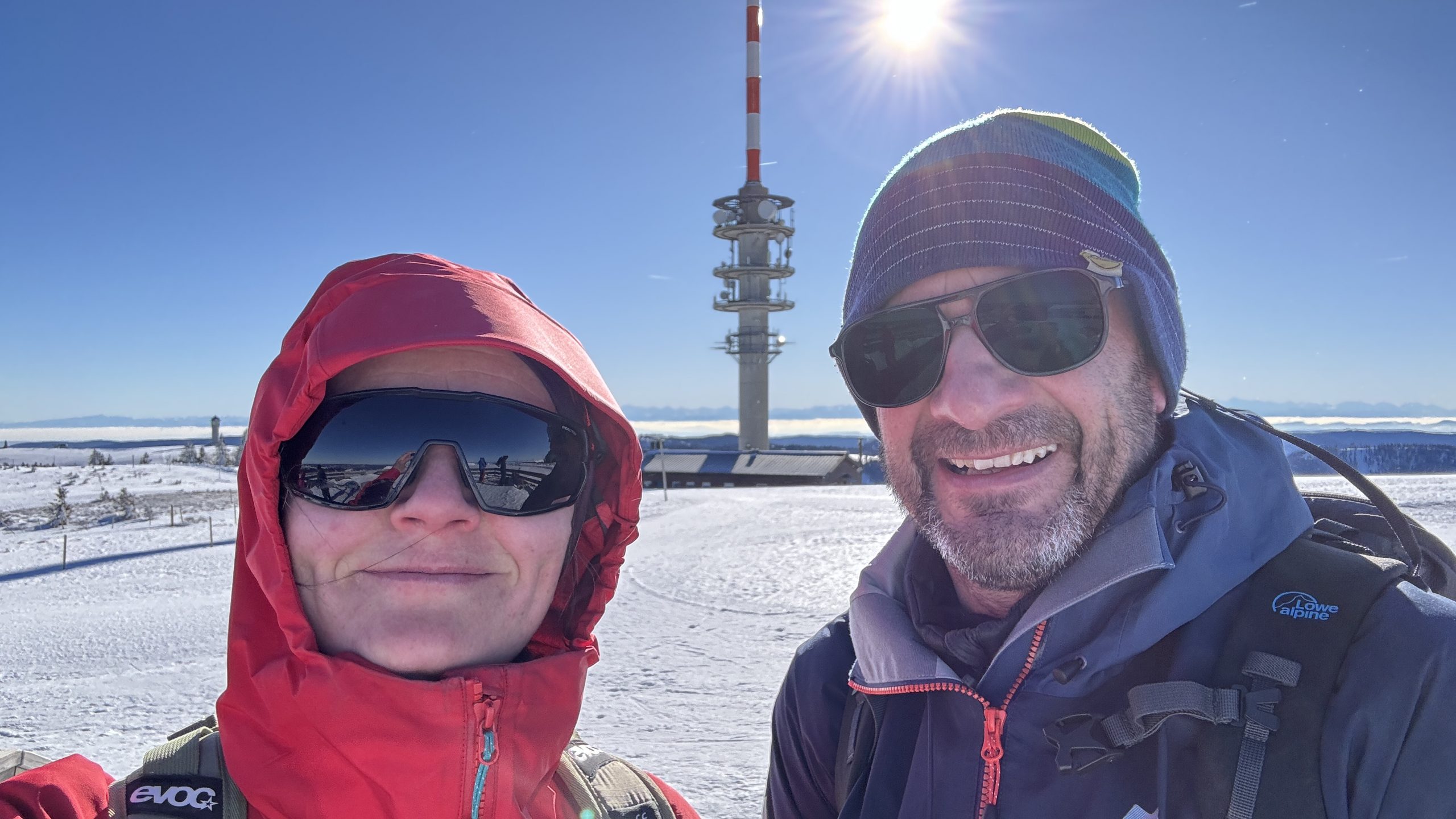 Wir nutzen das tolle Wetter für eine Tour zum Feldberg. Wir starten am Parkplatz Napf, St. Wilhemer Tal. Es ist frisch, – 7 Grad. Es geht den Zick-Zack-Weg hoch zum Hüttenwasen. Von dort den Schneespuren folgend direkt hoch. Der Weg zum Zastler war gesperrt. Kurz vor dem Feldberg ist es ganz schön windig und kleine Eiskügelchen fliegen waagerecht. Dafür traumhafter Blick. Über die Wilhelmer Hütte geht es zurück in den warmen Sprinter.