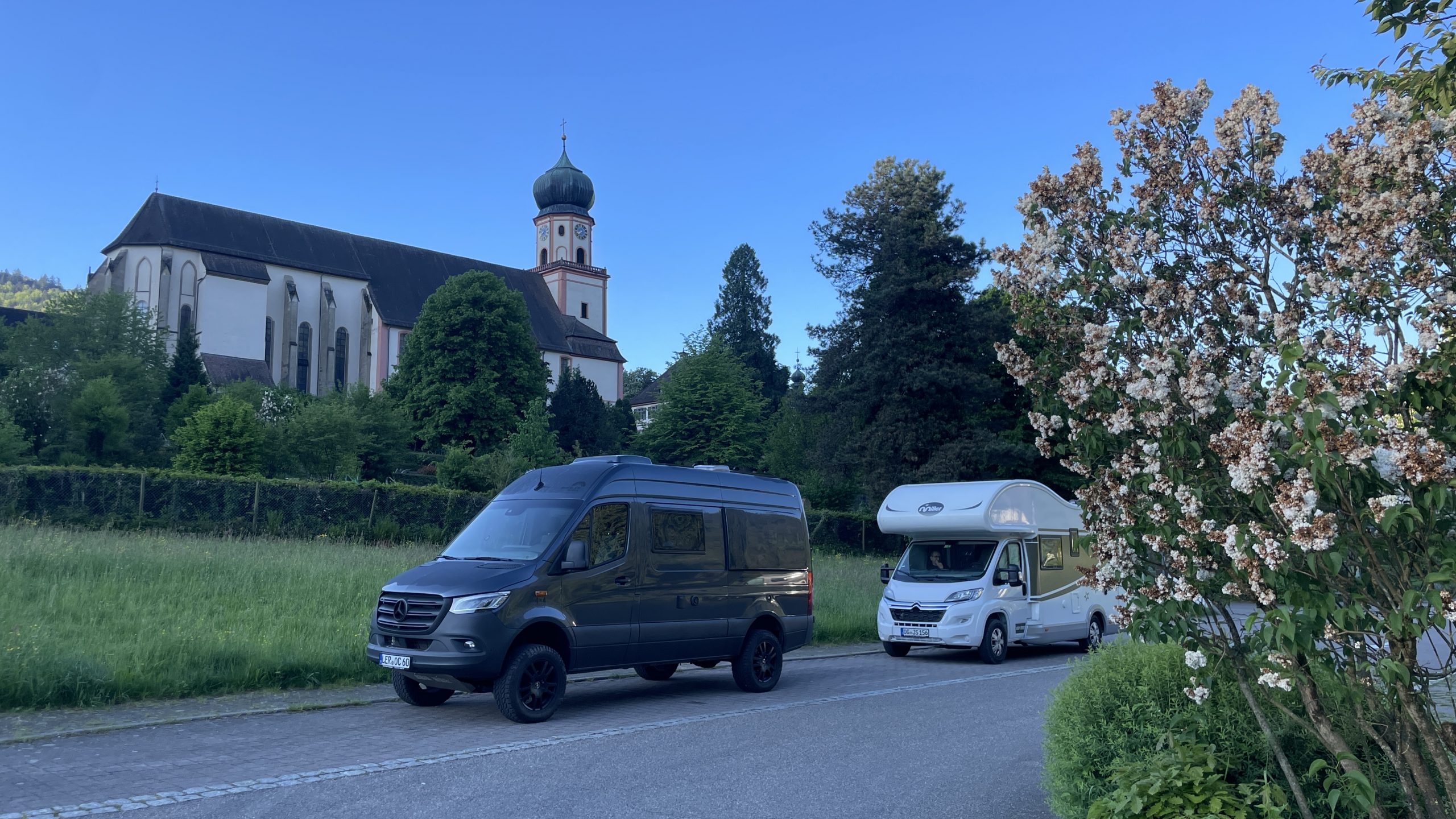 Wir treffen Sabine und Christian in Etzbach bei Staufen. Lecker essen. Dann ziehen wir für die Nacht zum Kloster ins Münstertal.