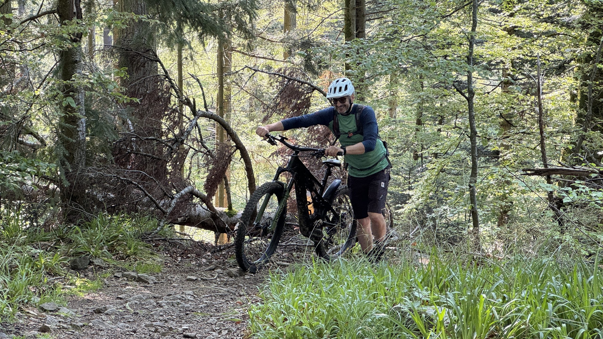Am Feiertag wollen wir den Hexentrail testen. Wir parken unten an der Jugendherbege und radeln durch Freiburg Wiehre zum Hexentrail. Da ist heute richtig was los im Wald. Der Trail hat Bikepark-Flair. Viele Sprünge. Wenn es hier sonst nichts gäbe – super. Aber so, sind wir ihn einmal gefahren und bevorzugen den Roßkopf oder Canadian. Für Jumper jedoch sehr zu empfehlen. Danach noch einmal hoch zum Canadian. Der ist heute feucht und schwieriger als die Male zuvor. Immer wieder richtig gut.
