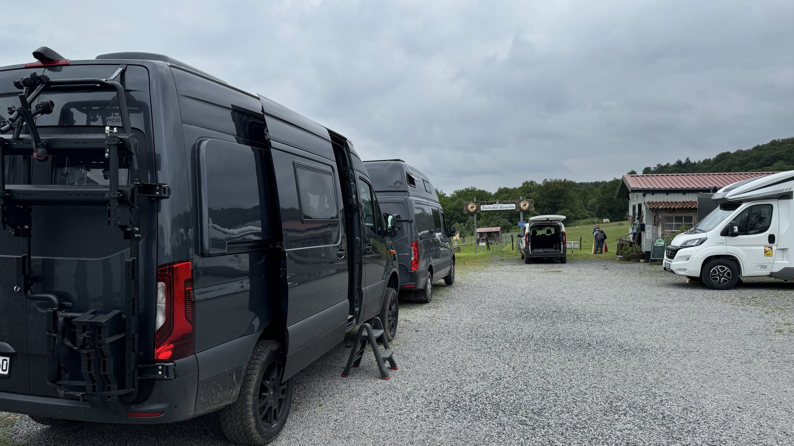 Messemüde zurück zum Camper. Wir finden 30 Minuten entfernt beim Wohnmobilstellplatz Forellenhof in der Nähe von Diebach/Hammelburg einen Platz. Und einen Platz im Restaurant. Da können wir entspannt den Abend ausklingen lassen.