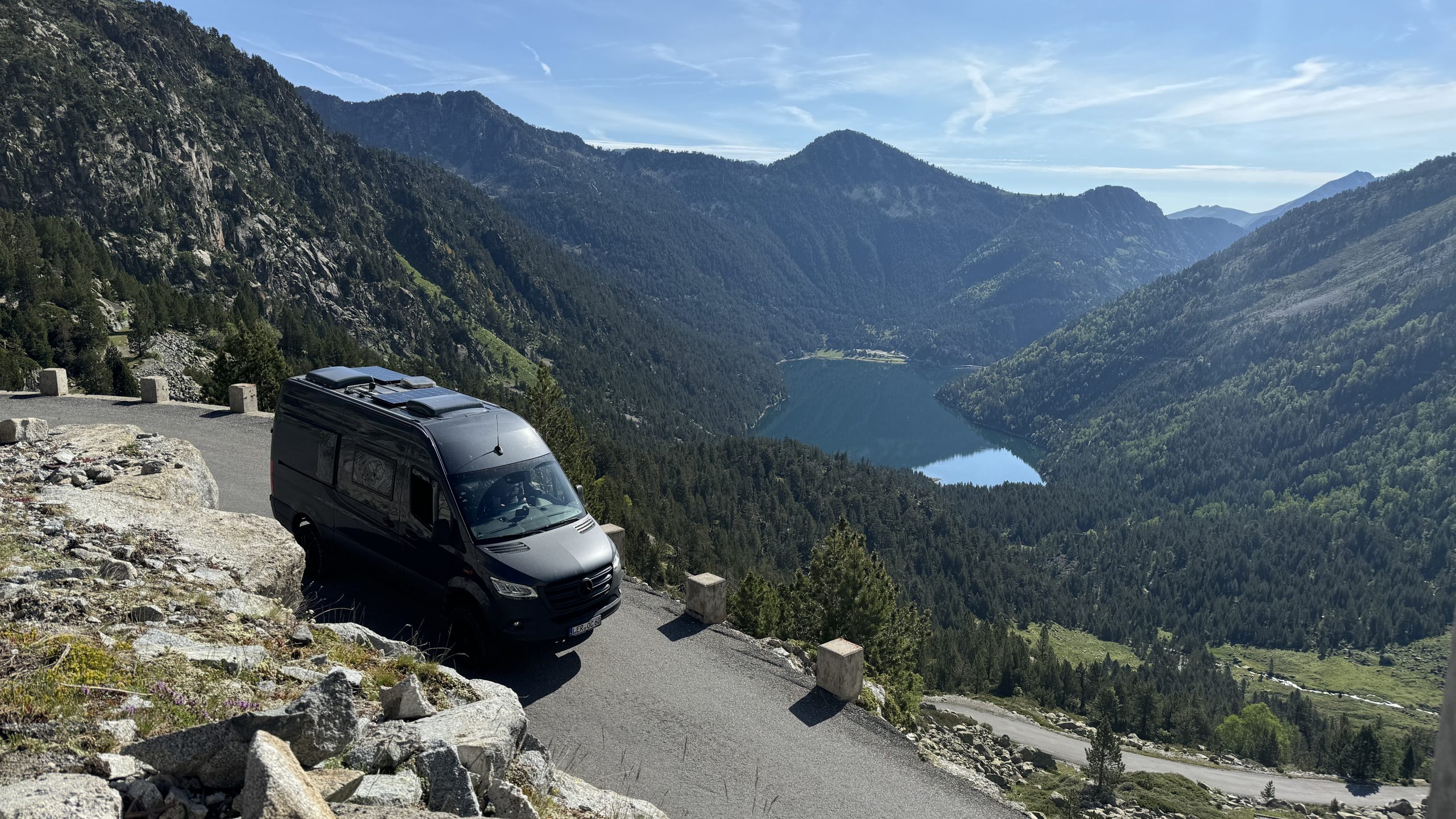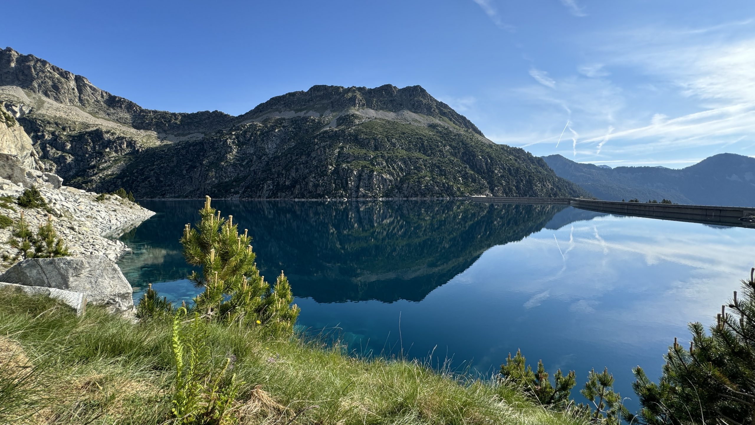wir im Tal hinter der Grenze den Lac-de-Cap-de-Long entdeckt. Das sieht toll aus. Den Pass zum Stausee hoch. Oben ist der Stausee instagrammabel – lädt uns aber nicht zu einer Wanderung ein. Zumal oben noch viel Schnee liegt. Also doch wieder runter und weiter.