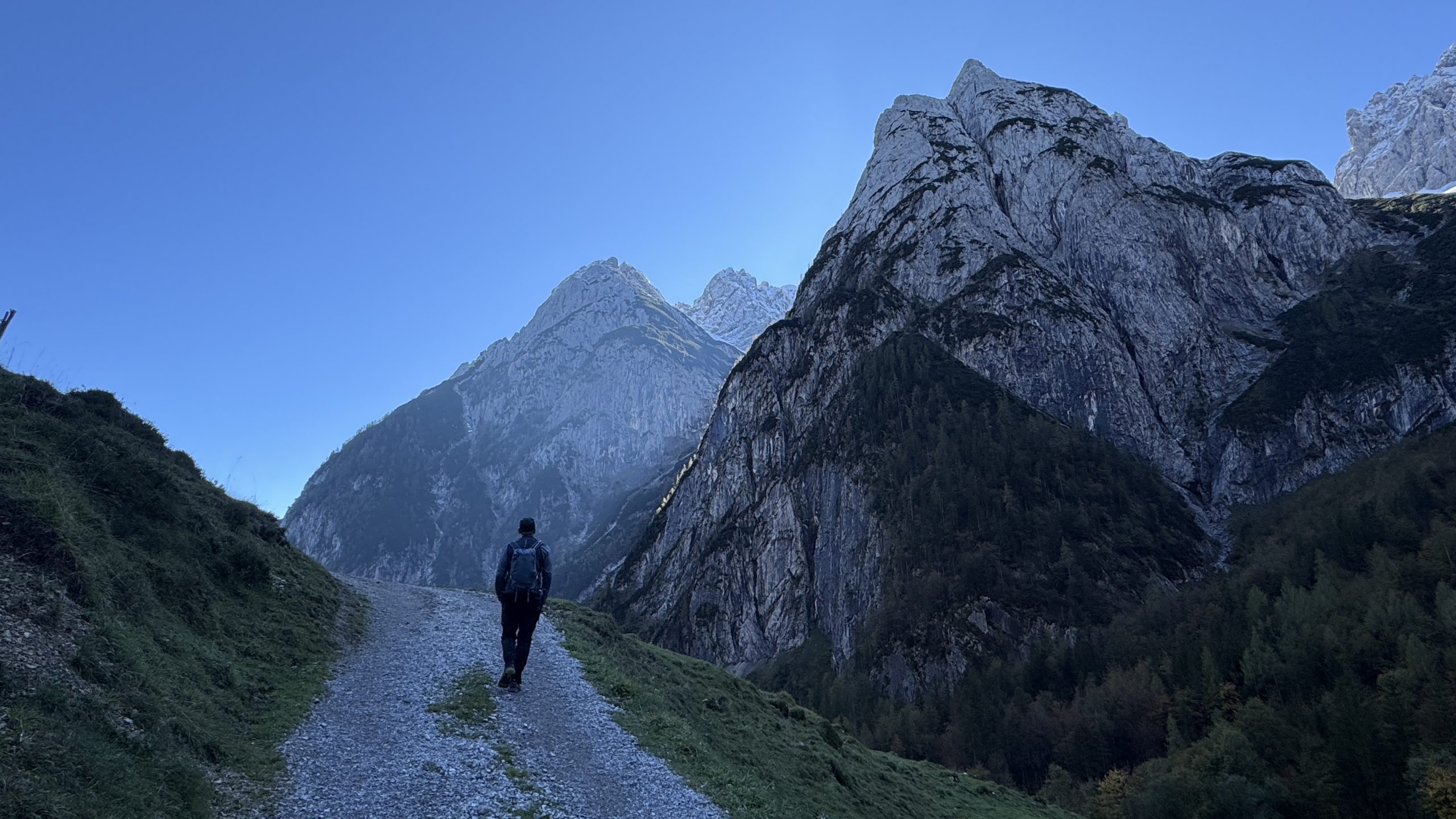Das Wetter ist morgens knackig kalt, verspricht aber super sonnig zu werden. Und zieht es zum Wilden Kaiser. In Grainau rauf zum Kaiserbachtal.