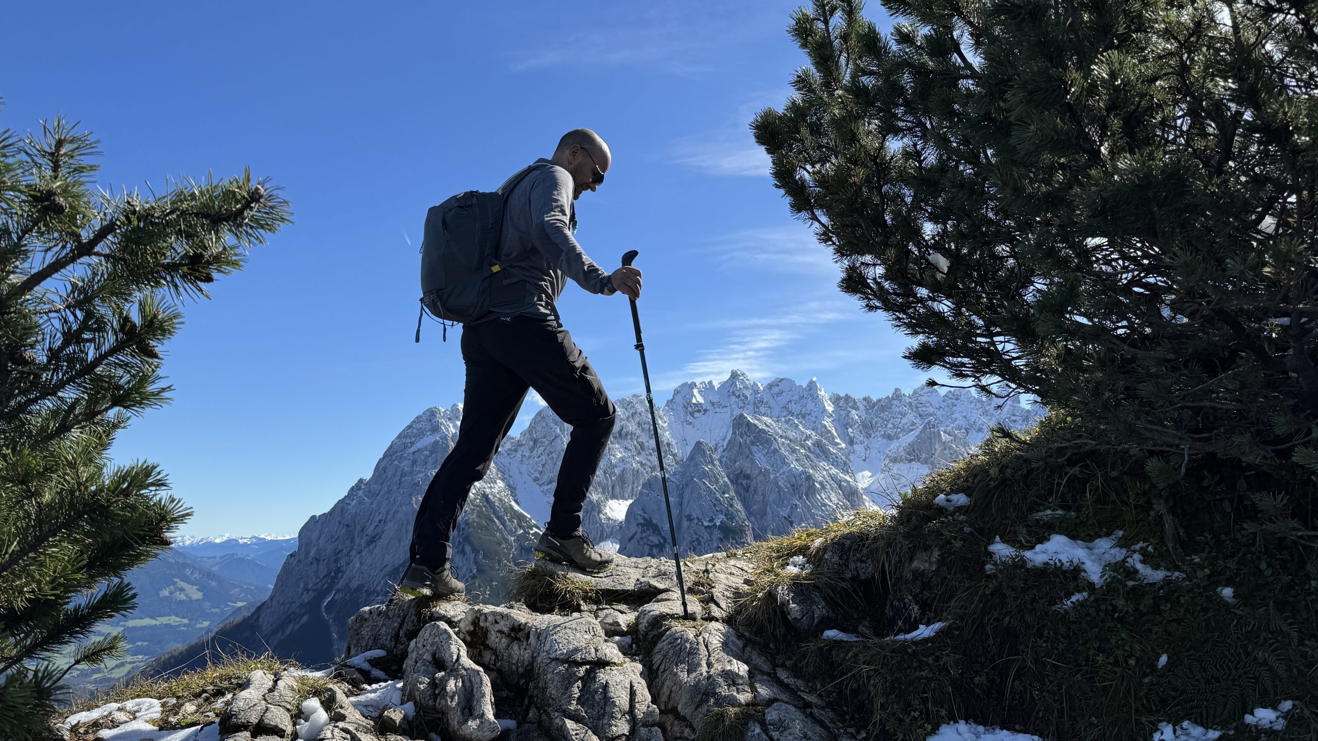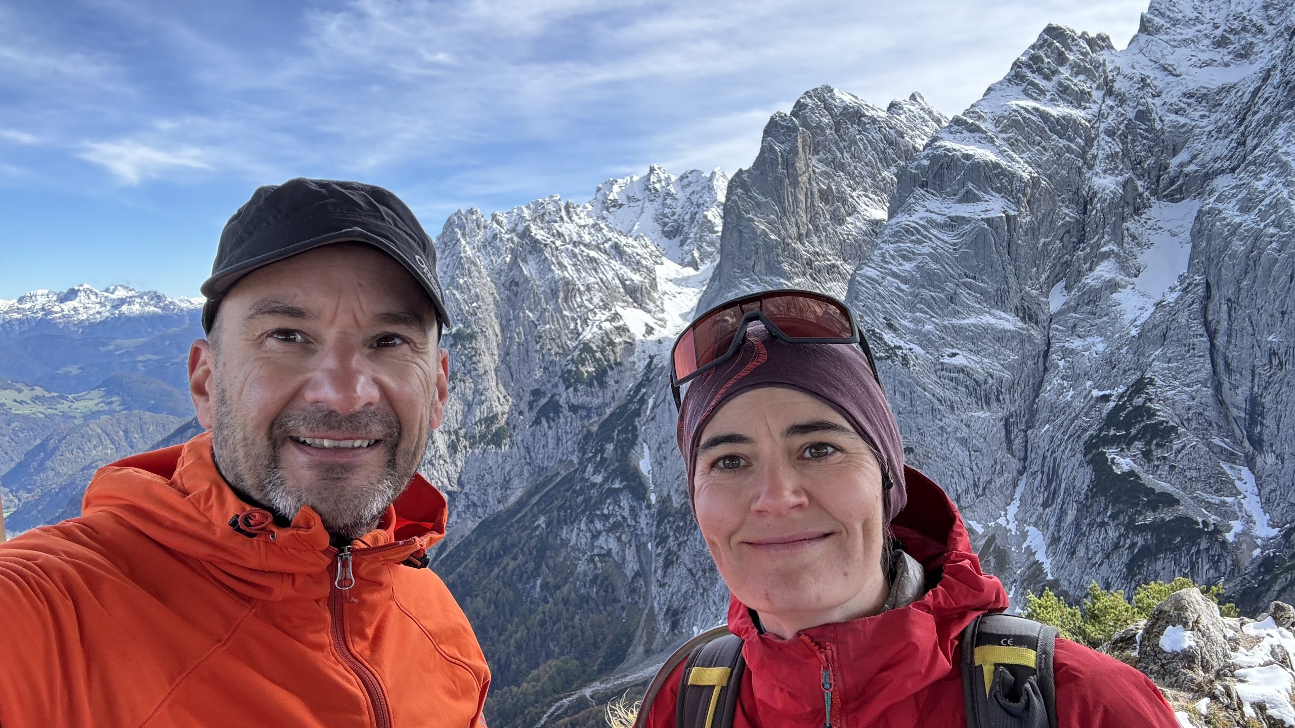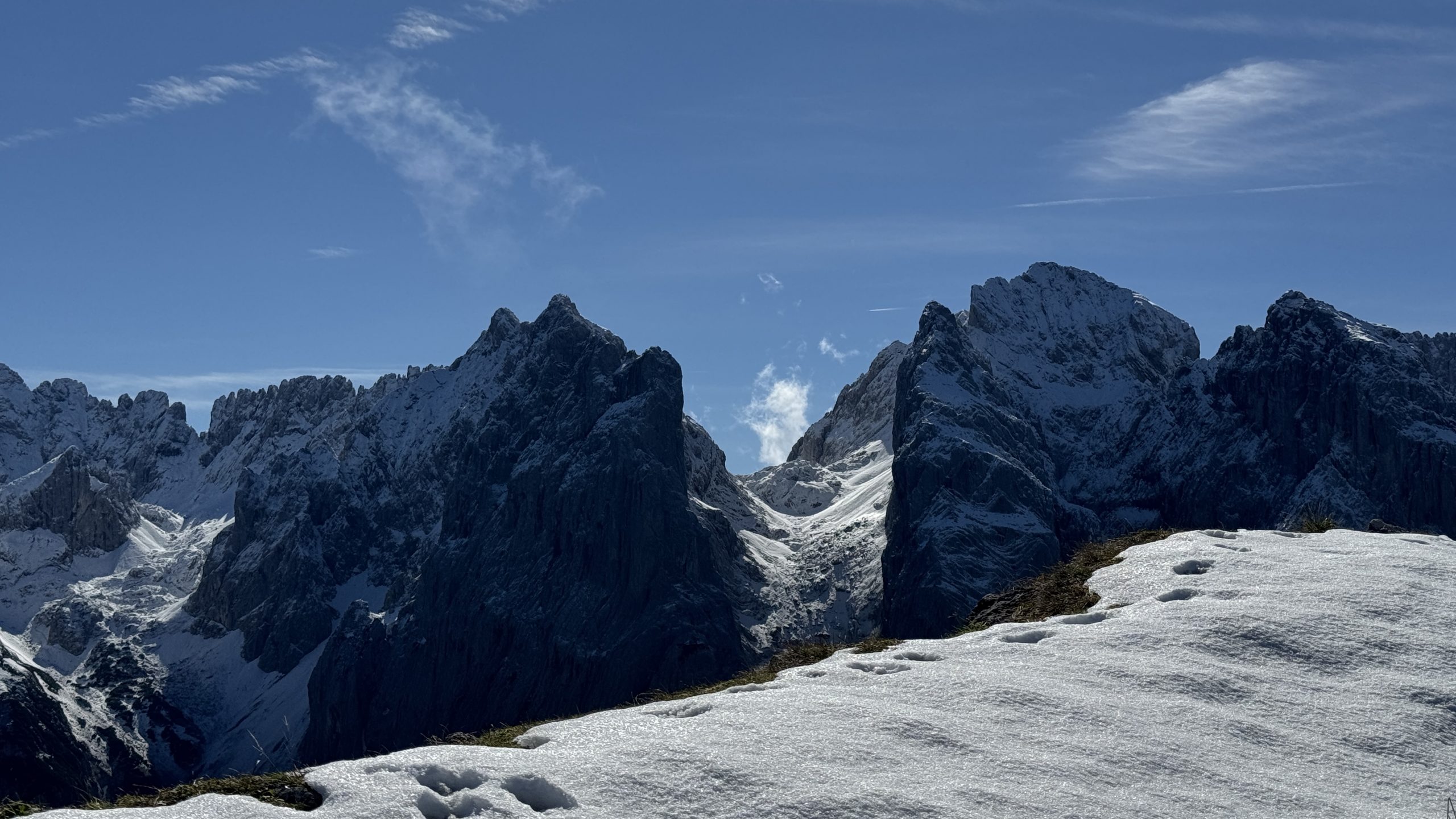 Wir parken oben an der Greisener Alm. Von dort geht es erst auf Schotter und dann steil auf einem sportlichen Pfad Richtung Feldberg rund 800Hm hoch. Sonne. Herrlich. Zwischendurch ist es richtig warm. Den Gipfel verpassen wir vor lauter Schnee und biegen gleich am Grad ab Richtung Stripsenkopf(1.807 Meter). Da waren wir vor fünf Jahren schon einmal nach einer abgebrochenen Kletter-Tour. Der Ausblick ist immer noch atemberaubend!