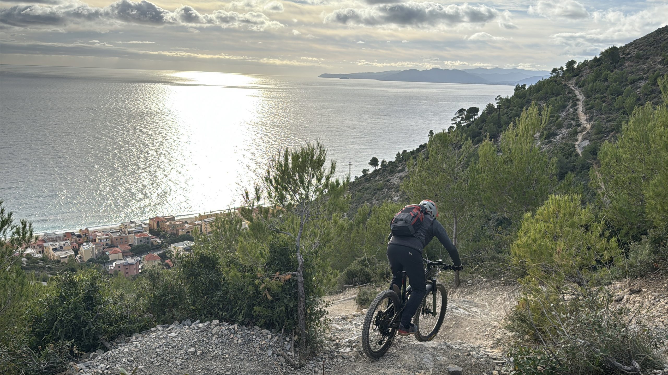 Am Sonntag ist Jagd in Finale. Die Klassiker sind alle gesperrt. Deshalb wollen wir uns in Richtung Noli orientieren. Mal was Neues testen. Neu ist der Trail von der Burg herunter. Der wird nicht viel gefahren und ist voller Blätter. Kann man machen, muss man nicht.