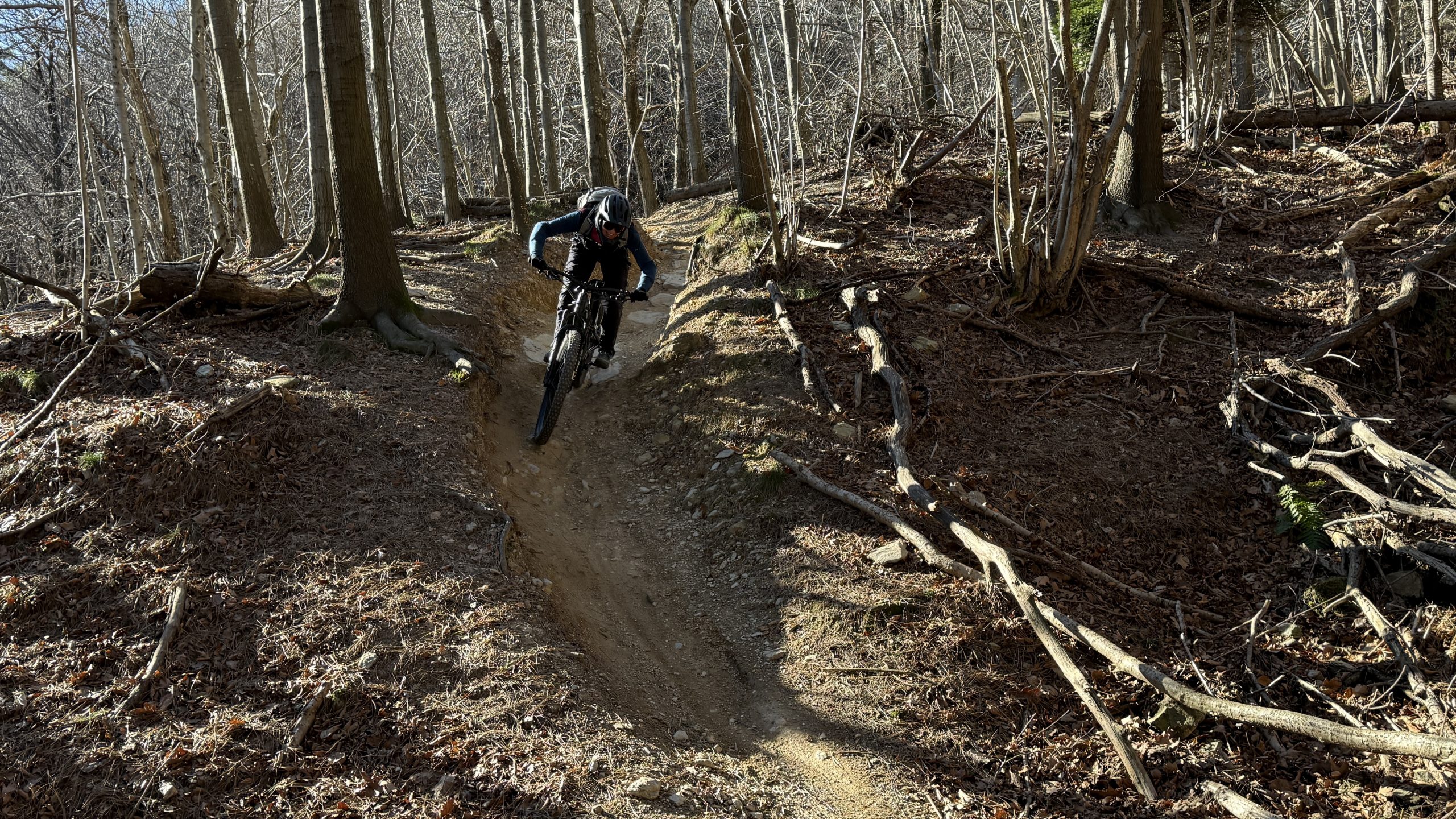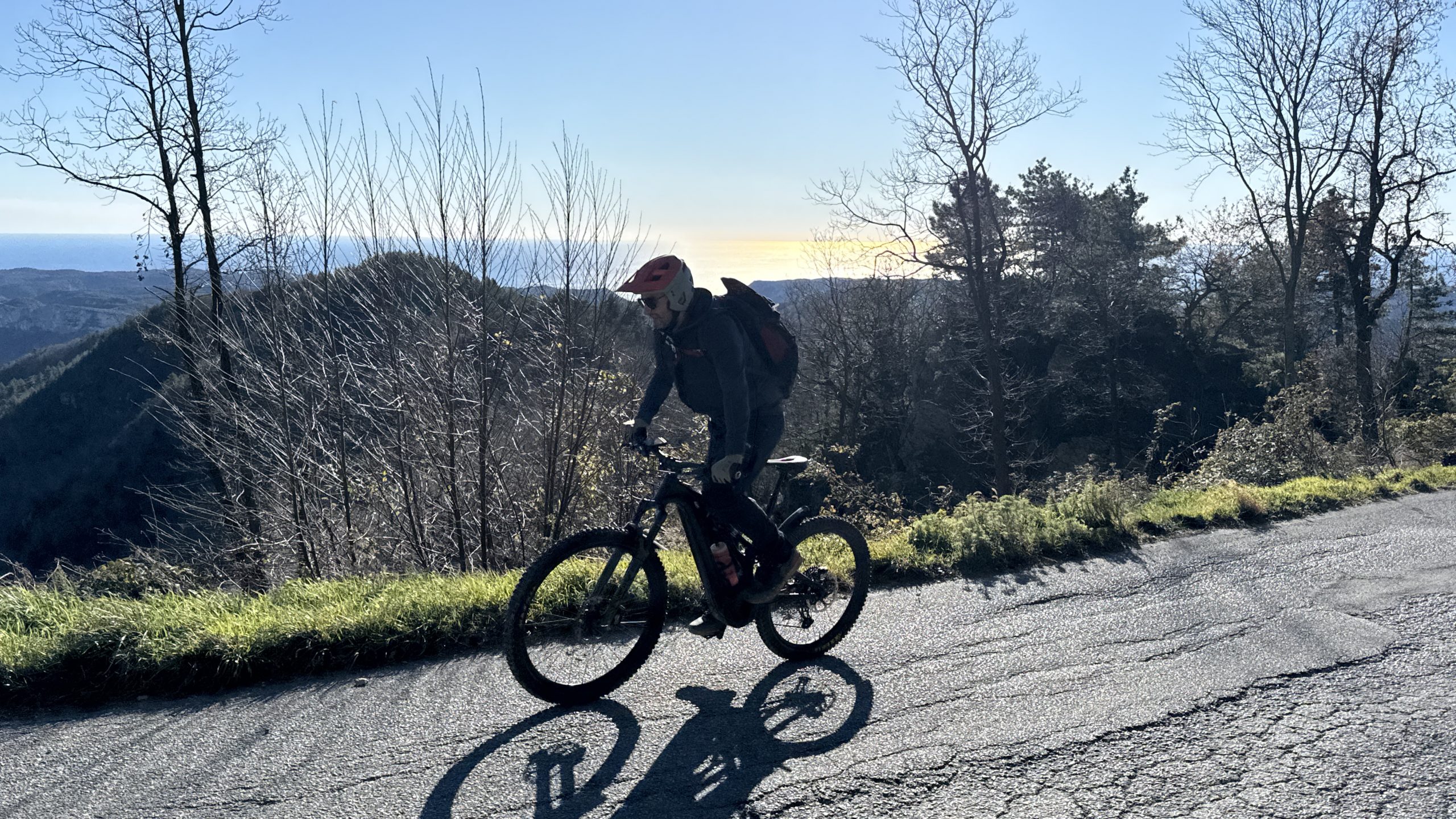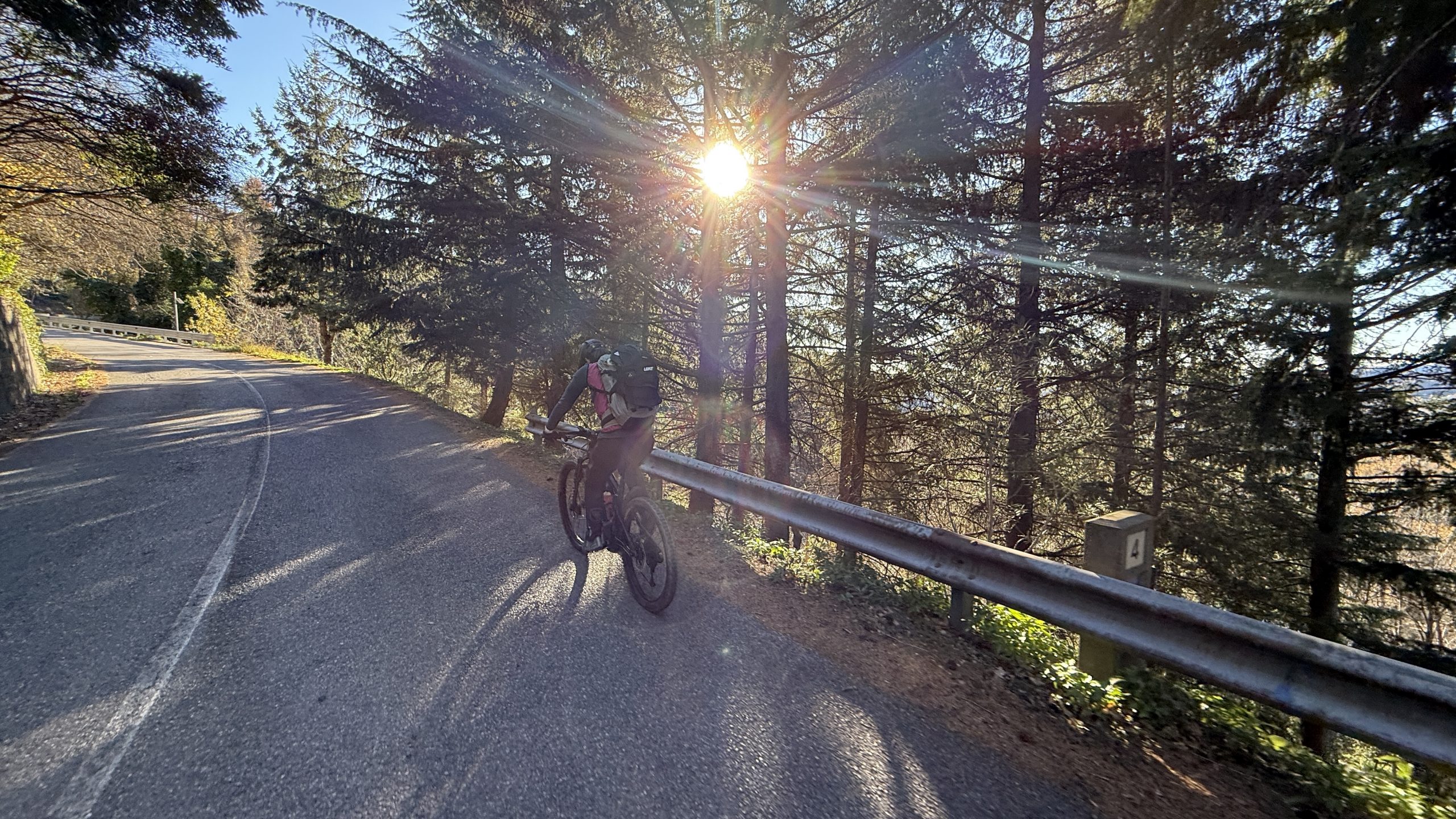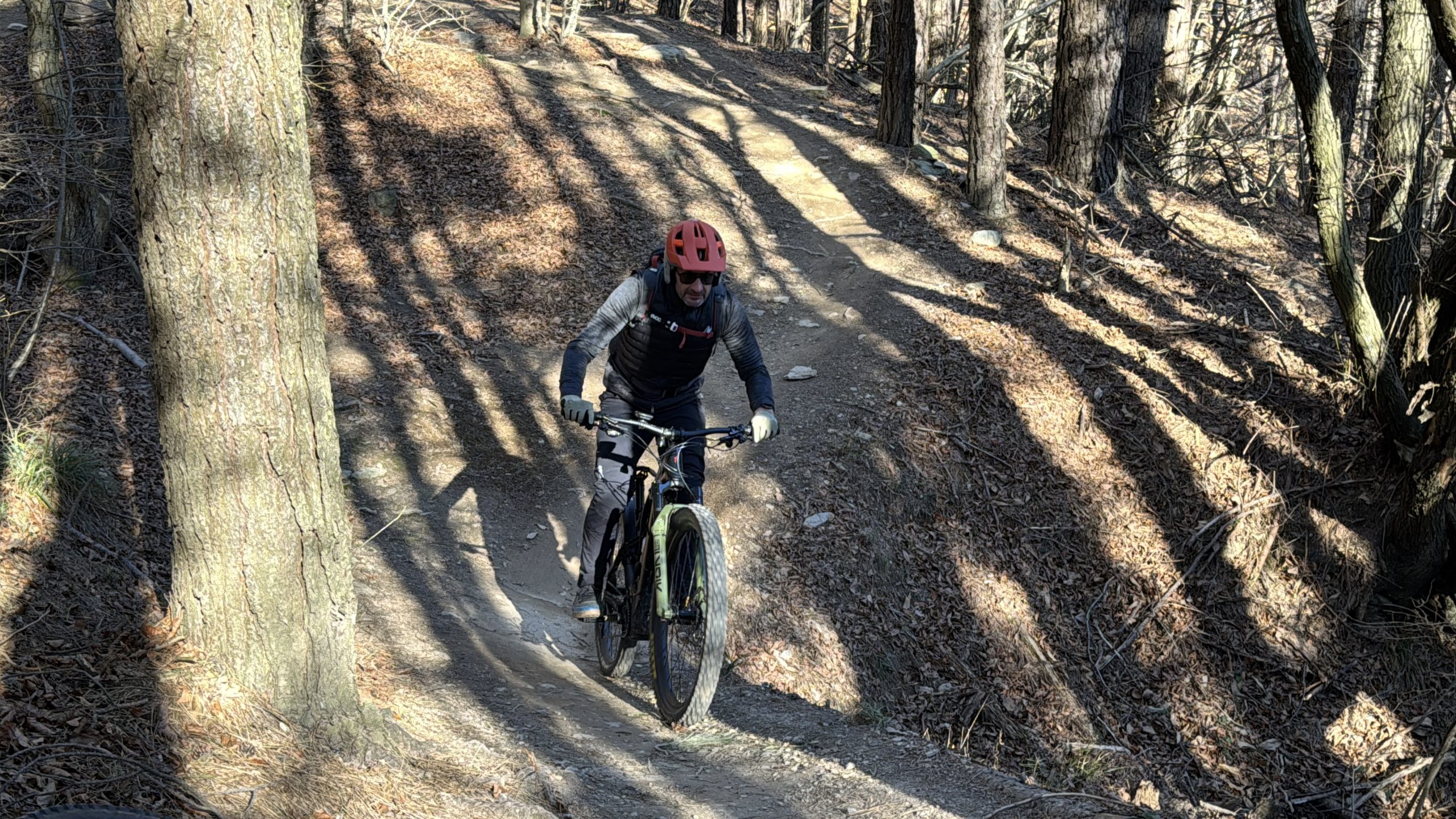 Heute ist es noch ein Grad wärmer. Wieder strahlend blauer Himmel. Wir pedalieren zur Base Nato hoch. In der Sonne ist es herrlich warm. Oben ist der Boden gefroren und es pfeift eisig kalt. Eigentlich wollten wir vor dem Ingegnere noch einen Trail von der Nato Base fahren. Der ist aber voller Blätter und spricht uns nicht so wirklich an 😀. Wir fahren den Einstieg des Trails wieder hoch. Heute ist fast gar nichts los. Dann rüber zum Ingegnere. Auf der Kuppe ist es eisig. Zum Glück geht es bald runter zurück in den Wald. Dort ist es schön warm und spaßig. Kurz vor Schluss teste ich mal meinen Helm. Alles top. Gemütlich kaufen wir noch ein und chillen den Weihnachtsabend.