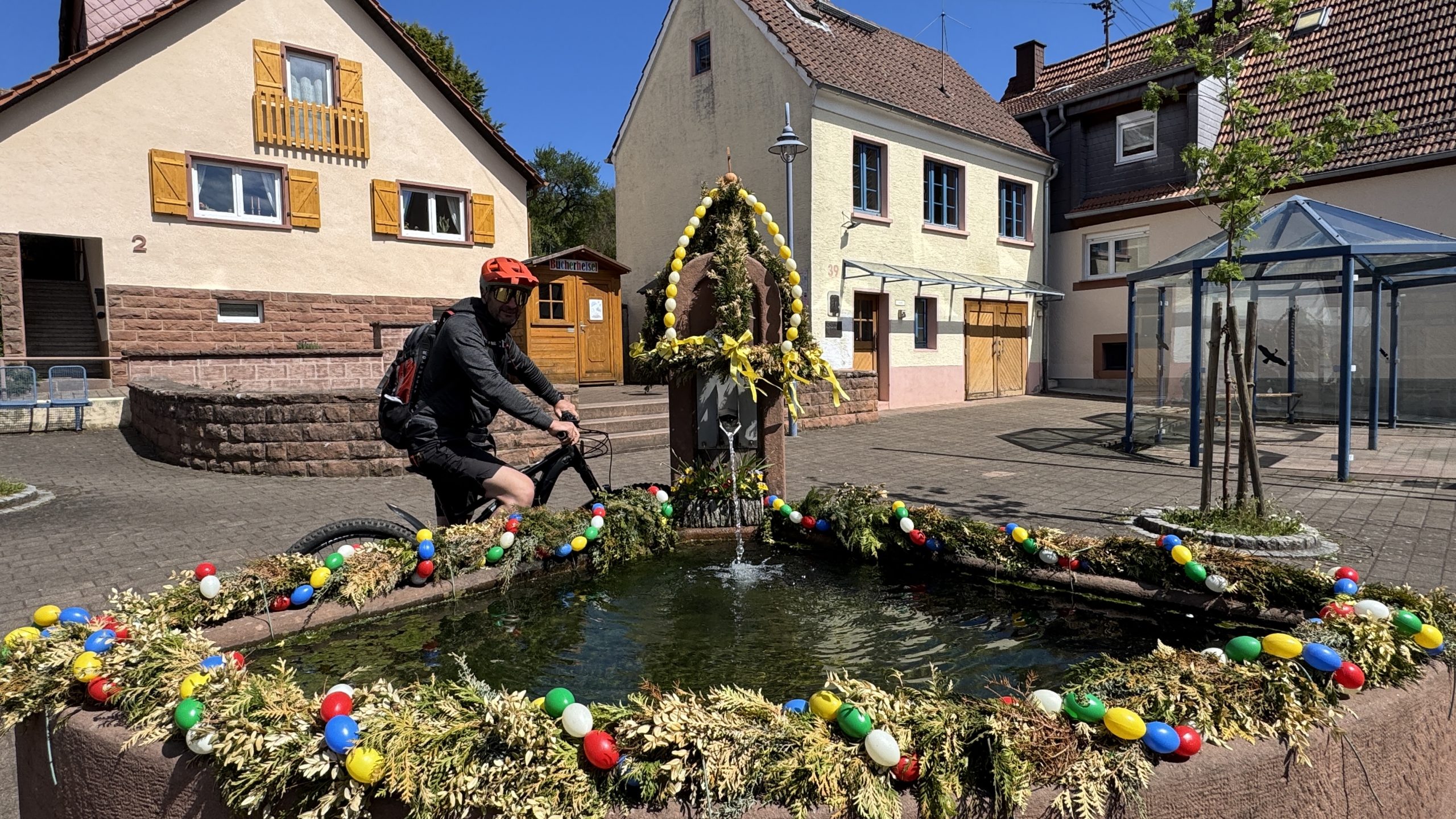 Wir und die Pfalz werden allerdings mountainbike-technisch nicht ganz warm. Mehr XCO Country. Nachmittags kommt der Regen. Bad Orb ist vom Wetter raus. Weiter östlich wird es besser. Ochsenkopf war ein Ziel – bis wir feststellen, dass der Bikepark noch geschlossen ist. Bikepark in Tschechien wär auch ein Ziel. Auch noch zu. Egal – erstmal Richtung Osten. Wir fahren bis Herrieden und entscheiden dann morgen.