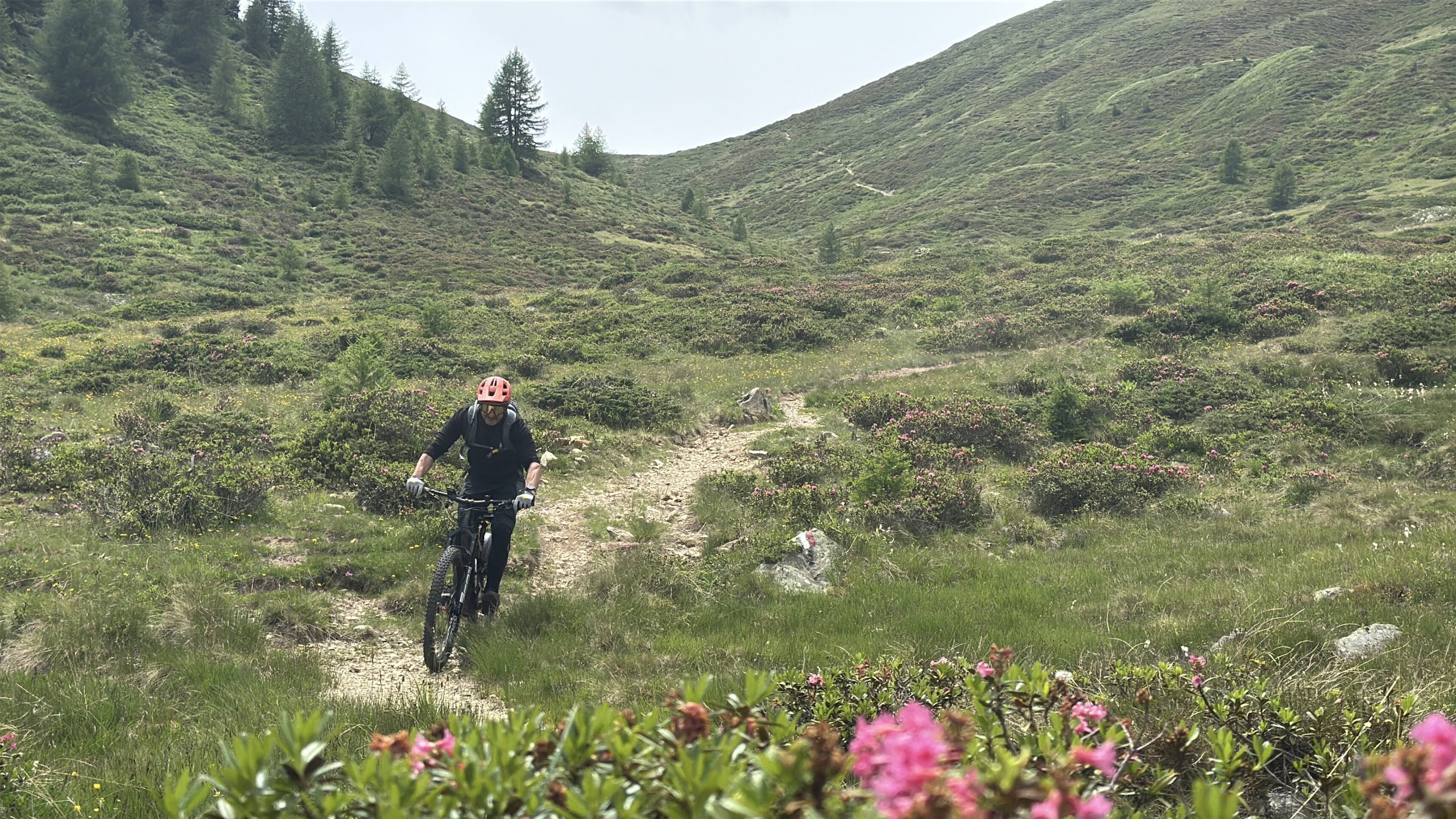Die Trails im 3-Länder-Enduro sind immer noch richtig genial! Die Kombi aus E und Lift sorgt für 2.700 Tiefenmeter. Yeah! 6,5 Stunden auf Tour.