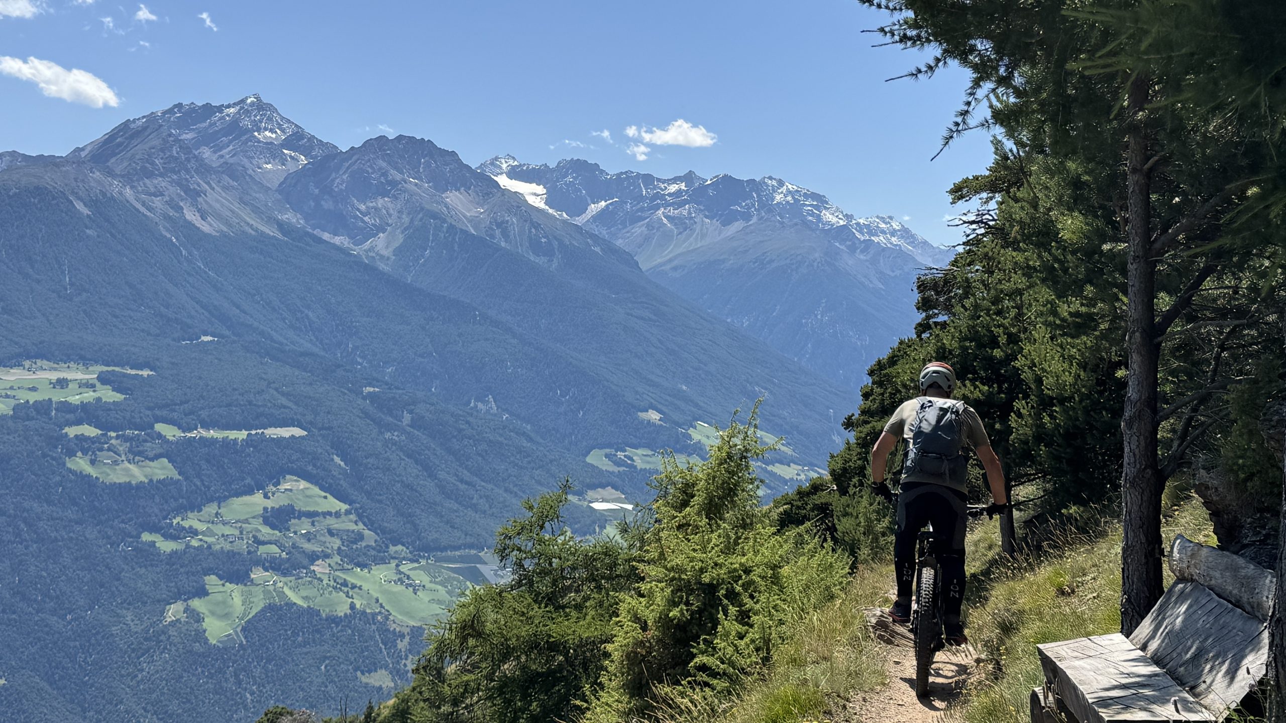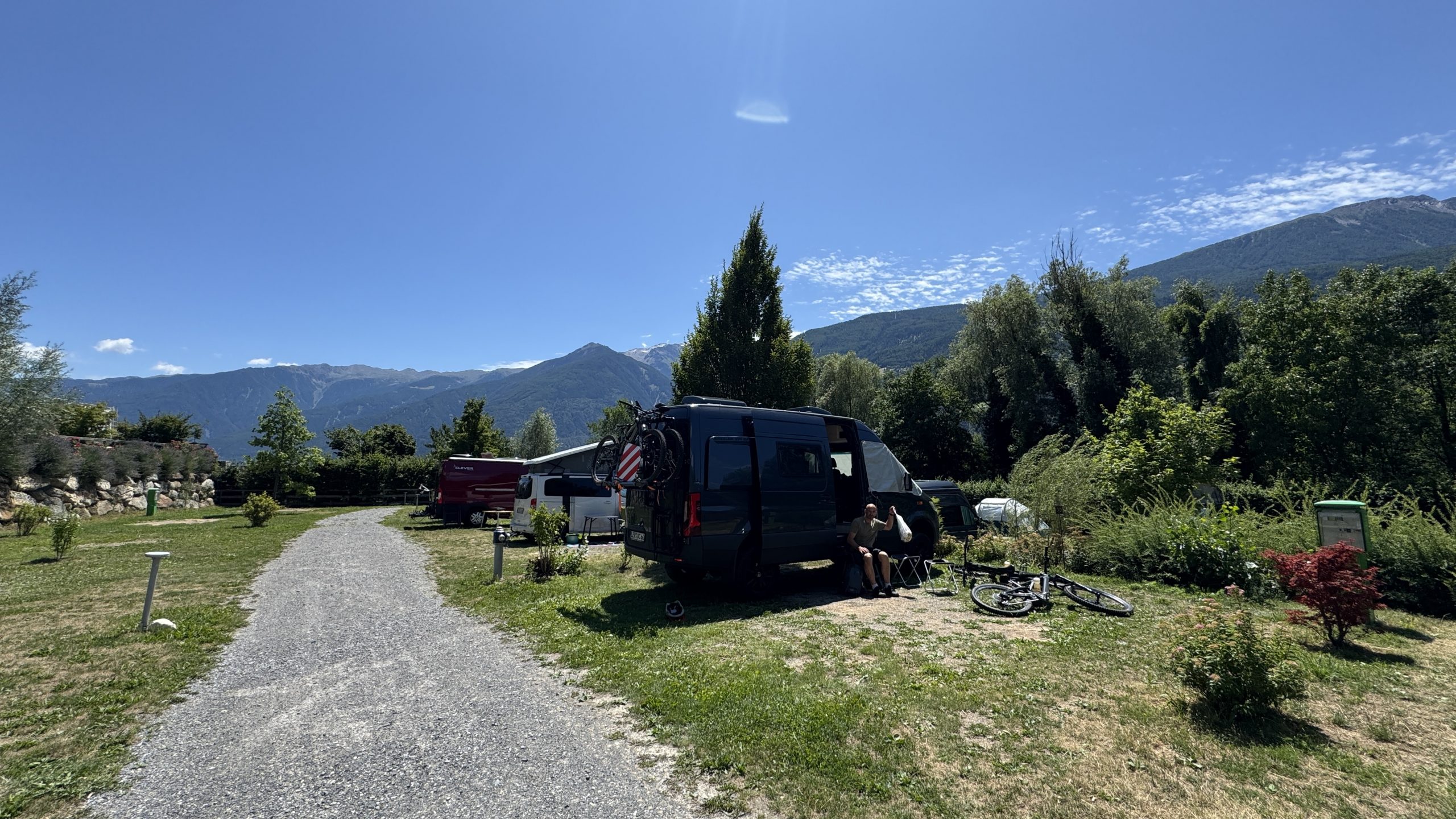Wir wechseln zurück nach Südtirol. Neues Ziel ist Schlanders beim Camping Vogelsang. Da wollten wir bei unserem ersten Vinschgau-Besuch hin und auf der Bucketlist steht auch noch der Panorama-Trail. Wir können Mittags schon einchecken und satteln schnell die Räder.
