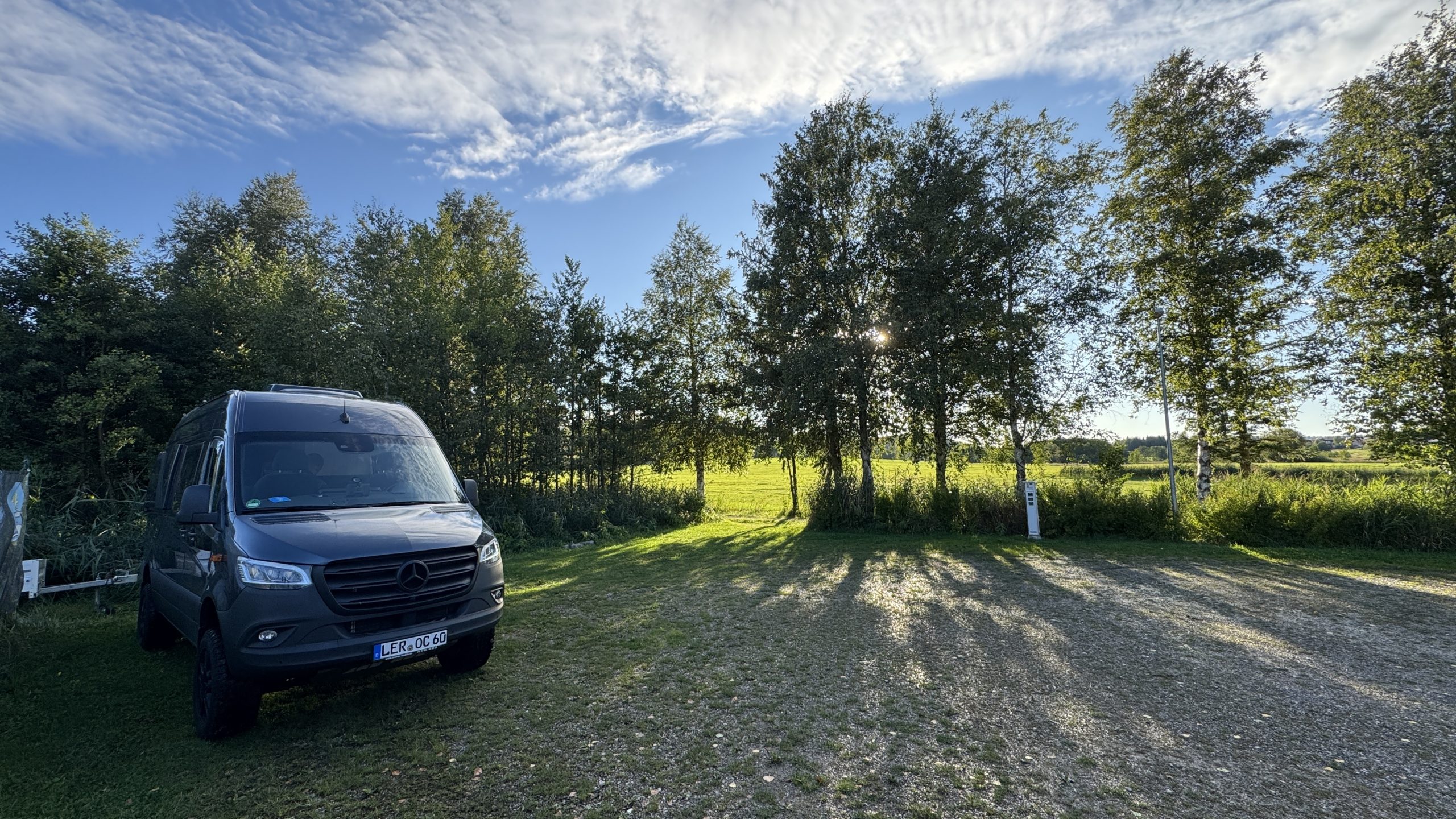 Es geht auf zum Gipfel-Bike-Camp zu Siegi ins Vinschgau. Vorab gönnen wir uns einen Setup-Kurs in Oberammergau. Deswegen geht es erst einmal ins Allgäu. Wir sind früh und können uns alle Stellplätze in der Gegend anschauen. Wir hatten uns für Bad Kohlgrub am Lift entschieden. Kurz vor Ladenschluss fällt mir ein, dass ich meine Regenhose vergessen habe. Für alpine Touren nächste Woche eher ungünstig. In Peiting bei Schongau finden wir einen Sportladen und eine top Regenhose. So ein Glück- das wäre vor dem Gipfelbike-Camp echt schwierig geworden. Wir entscheiden uns noch einmal um und landen auf dem Wohnmobil-Stellplatz in Bas Bayersoien. Top Platz. Schön ruhig, obwohl er dicht an der Bundesstraße liegt.